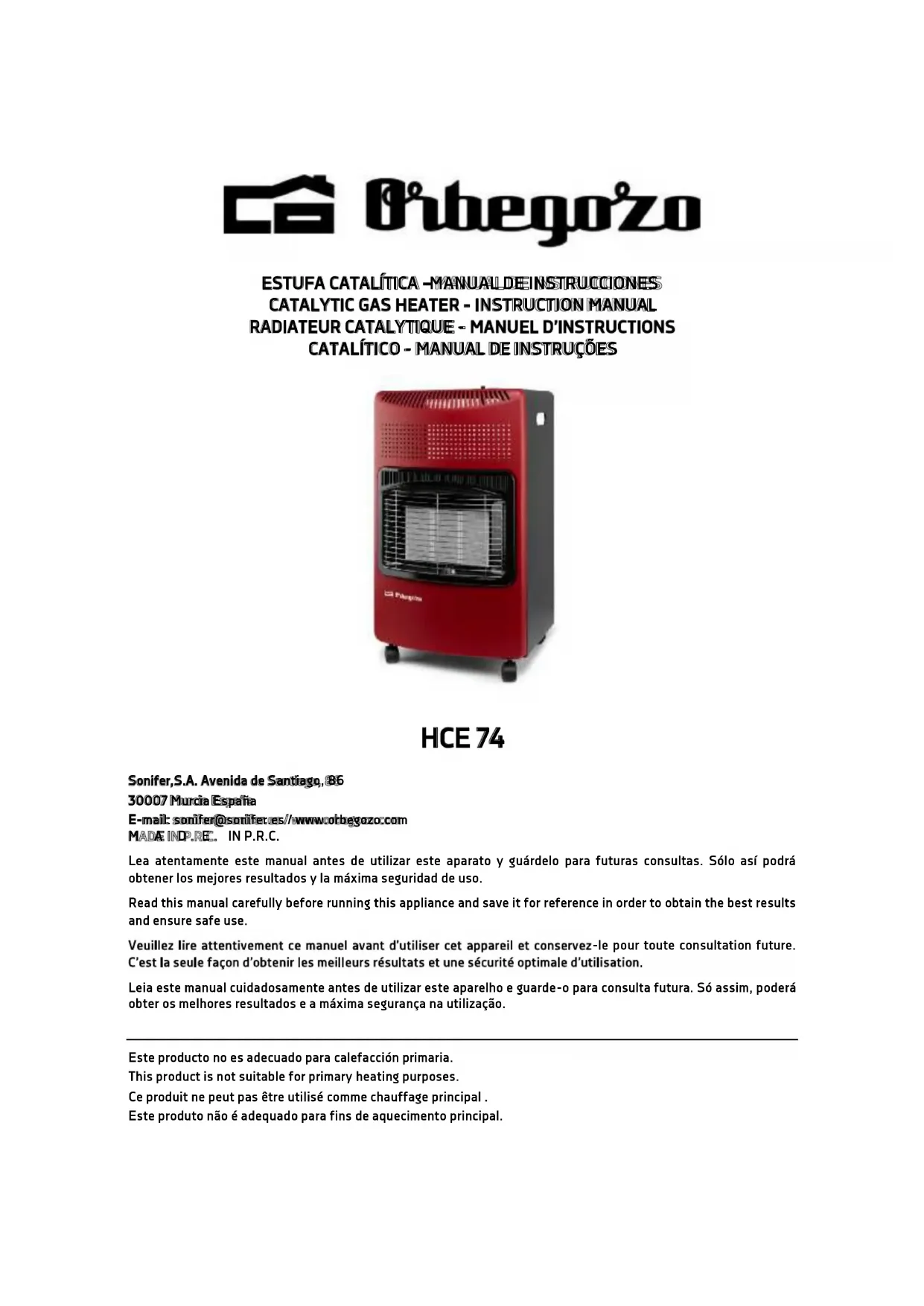Retrouvez gratuitement la notice de l'appareil HCE 74 Orbegozo au format PDF.