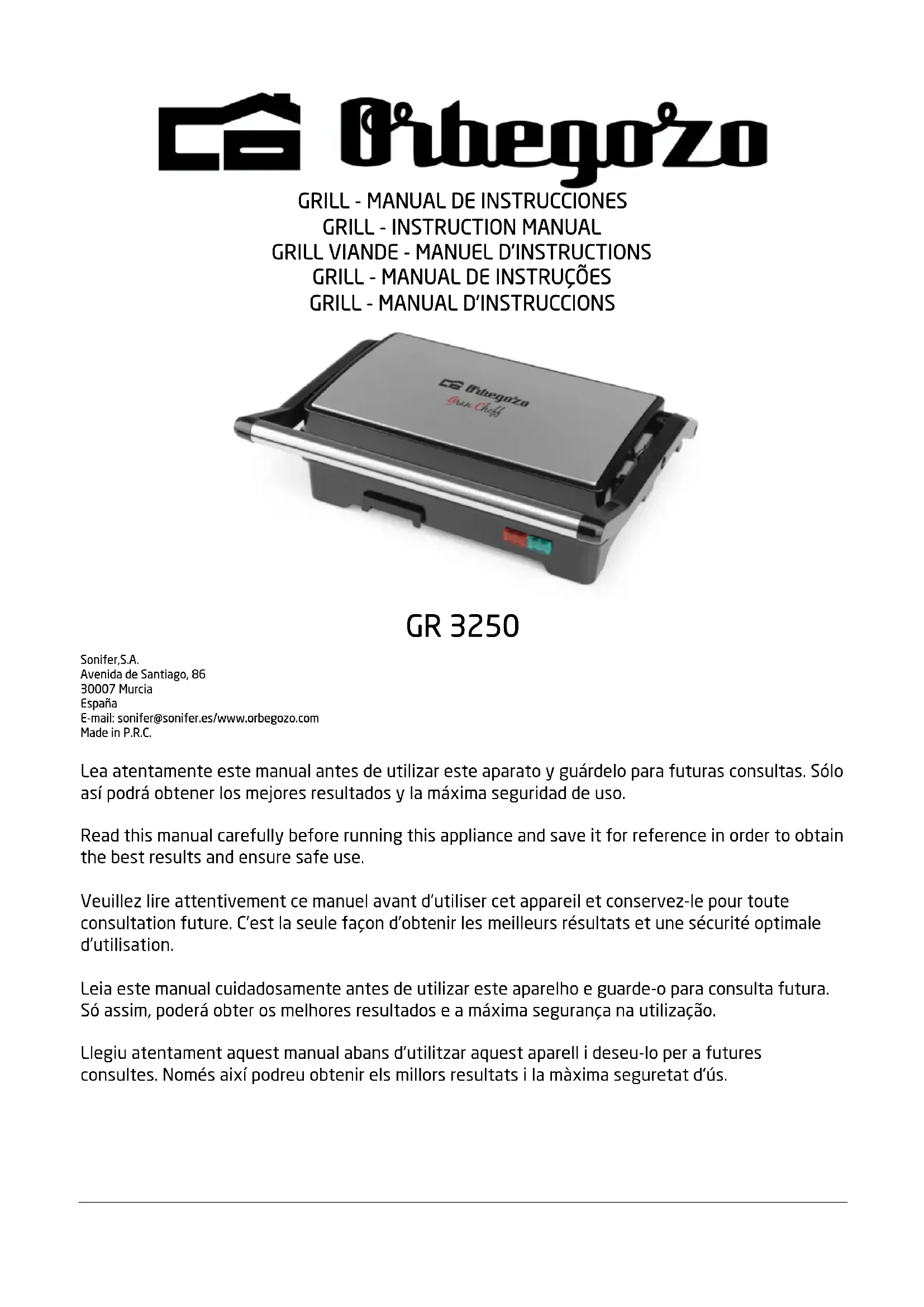 Retrouvez gratuitement la notice de l'appareil GR 3250 Orbegozo au format PDF.