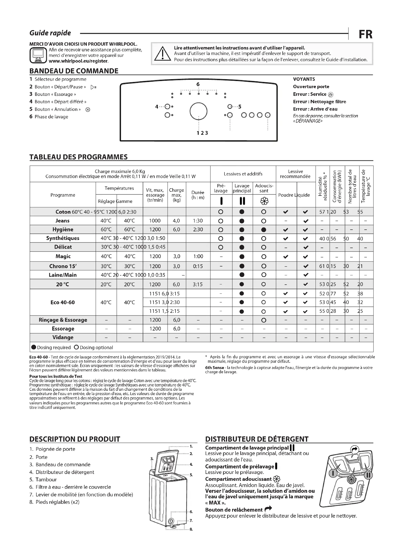 MODE D'EMPLOI TDLR 6240L FRN WHIRLPOOL