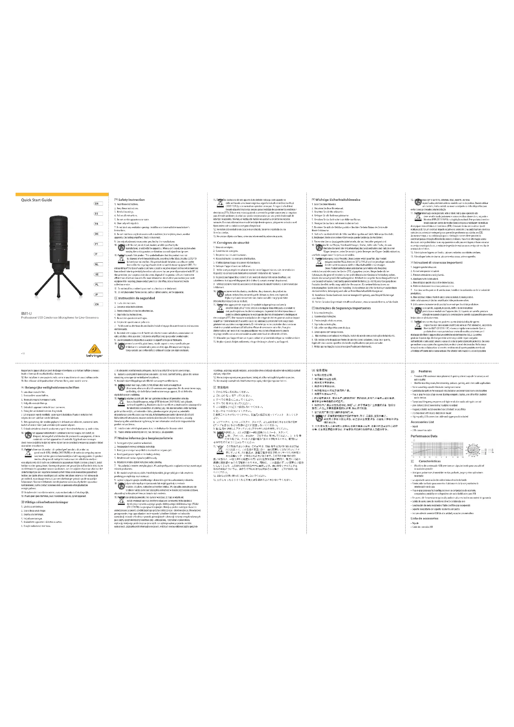 BM1U - Microphone BEHRINGER - Notice d'utilisation et mode d'emploi gratuit