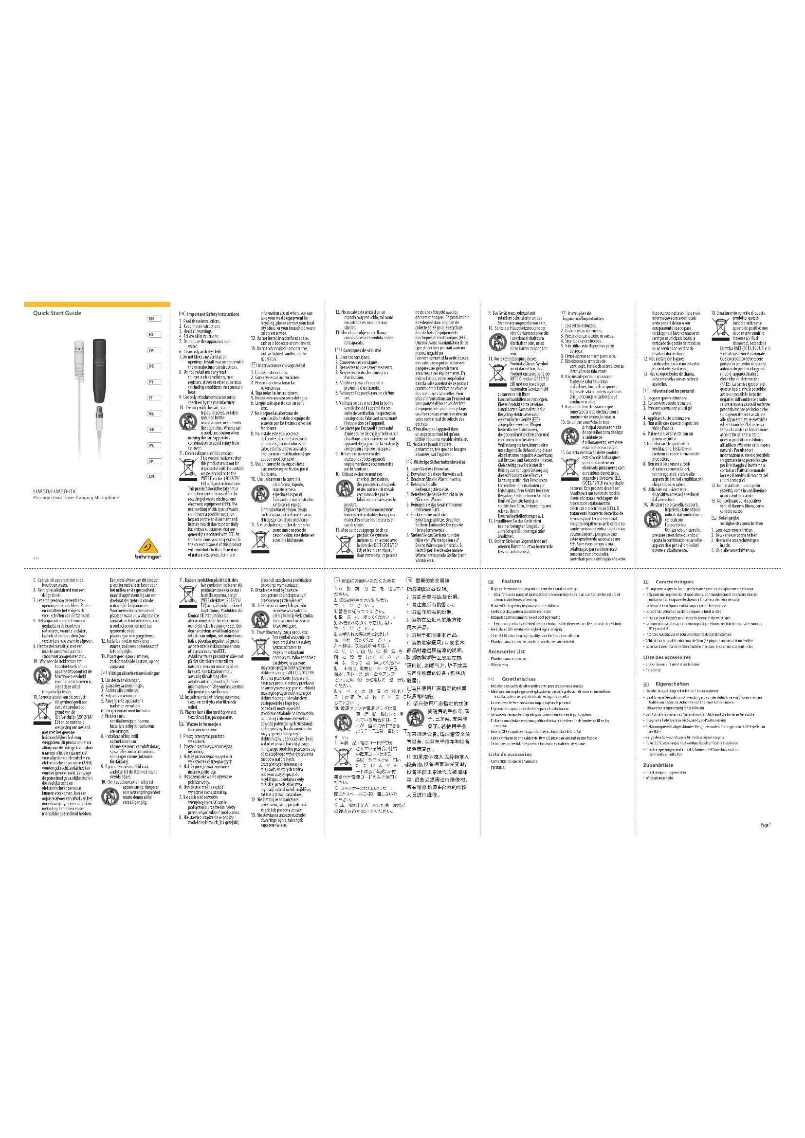 Téléchargez la notice de votre Microphone au format PDF gratuitement ! Retrouvez votre notice HM50 - BEHRINGER et reprennez votre appareil électronique en main. Sur cette page sont publiés tous les documents nécessaires à l'utilisation de votre appareil HM50 de la marque BEHRINGER.