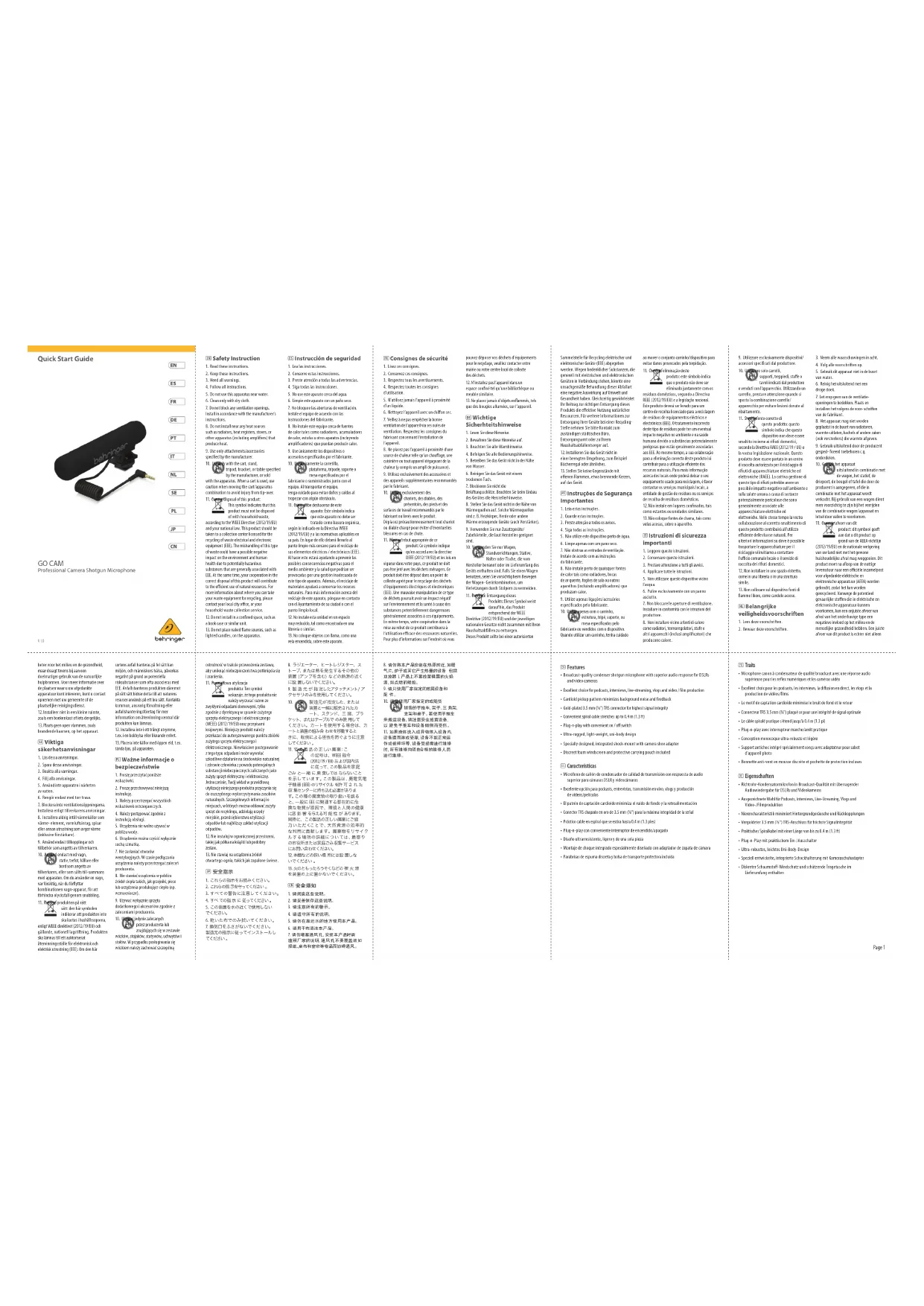 Go Cam - Microphone BEHRINGER - Notice d'utilisation et mode d'emploi gratuit