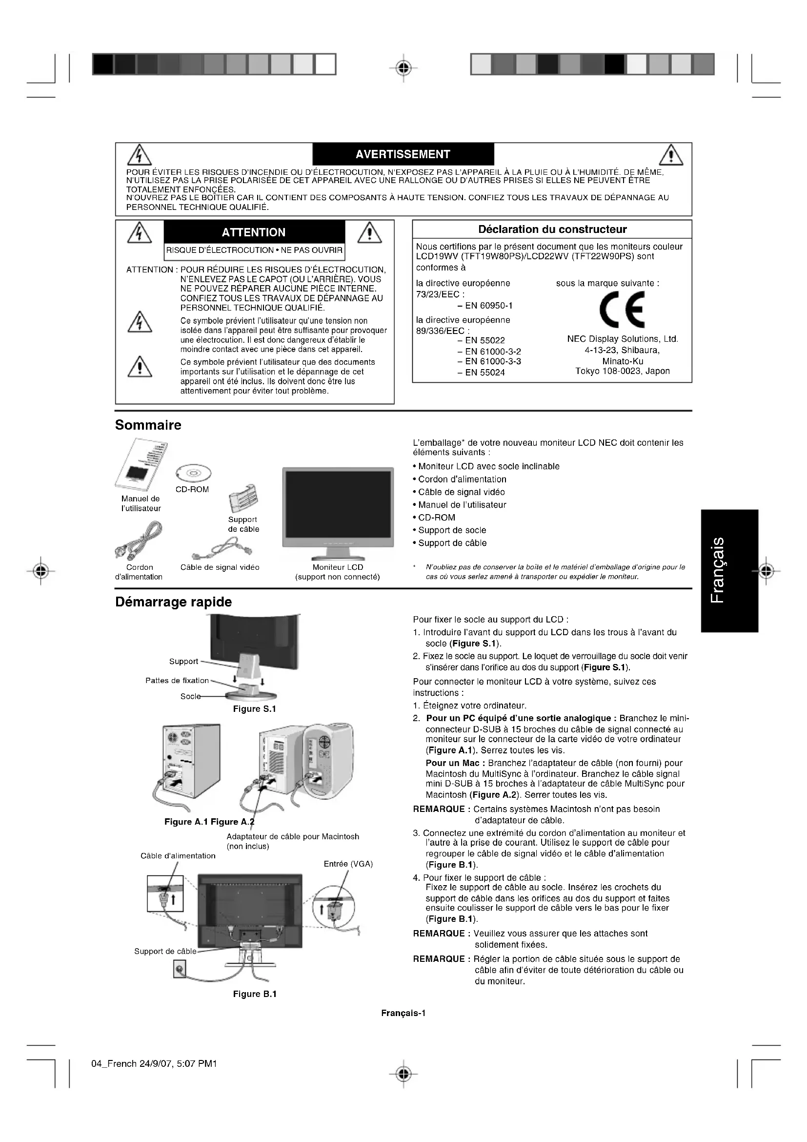 Téléchargez la notice de votre Moniteur au format PDF gratuitement ! Retrouvez votre notice MultiSync LCD22WV - NEC et reprennez votre appareil électronique en main. Sur cette page sont publiés tous les documents nécessaires à l'utilisation de votre appareil MultiSync LCD22WV de la marque NEC.