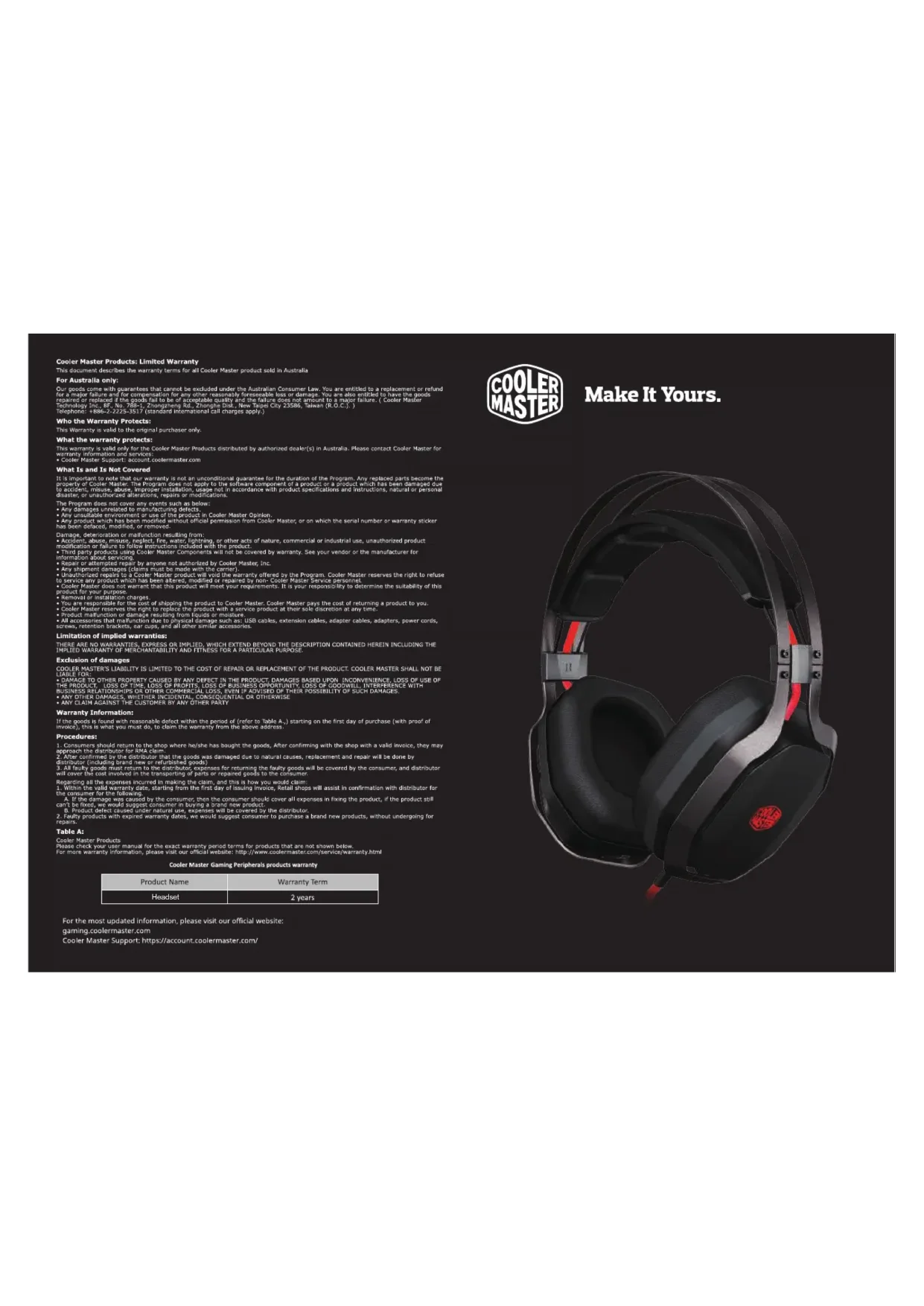 Y a-t-il une garantie pour les écouteurs COOLER MASTER MasterPulse Pro ?