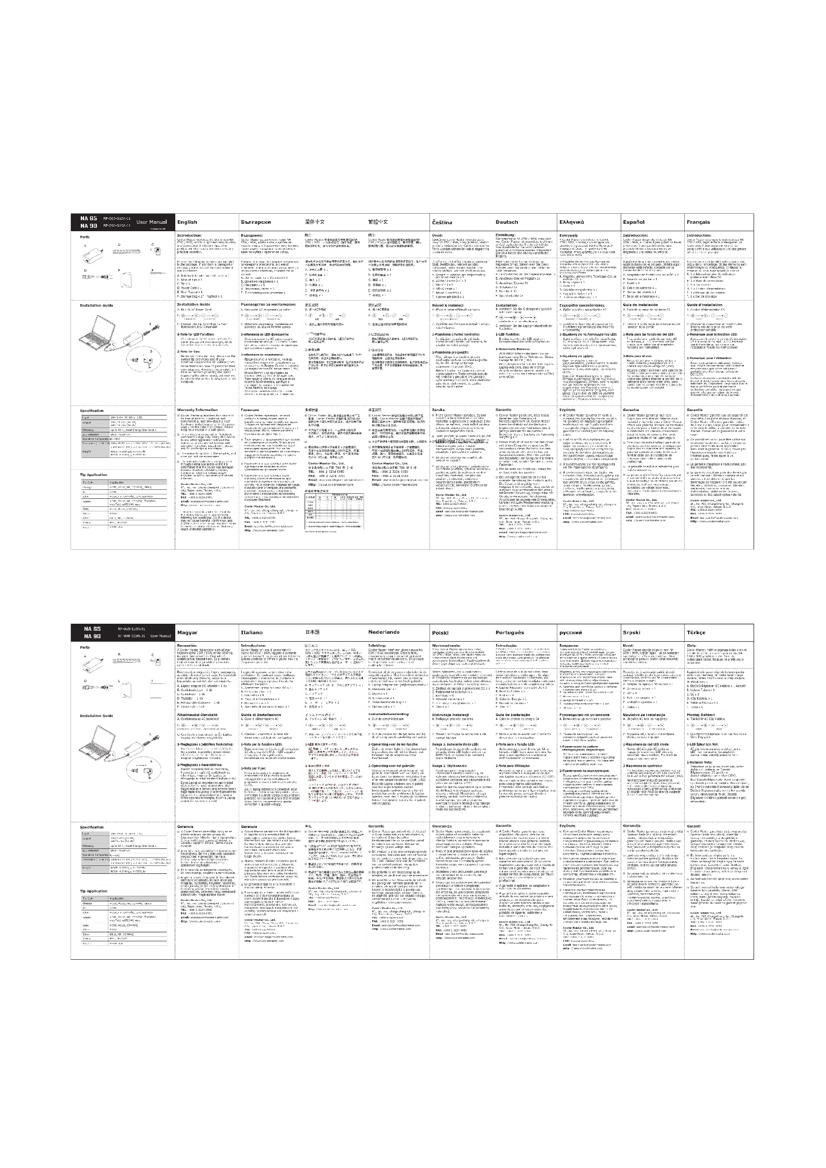 Cambie la punta según las dimensiones del conector de su portátil Garantía Cooler Master garantiza que este dispositivo está libre de defectos en el material y mano de obra y Cooler Master ofrece una garantía limitada del hardware de 2 años para la fuente de alimentación suministrada con carcasa comenzando desde la fecha de compra. Por favor, guarde el recibo en un lugar seguro. Ce produit est conçu pour être utilisé sur ordinateur seulement. Le fait d'utiliser ce produit dans toute autre application annulerait la garantie. Si vous n'avez pas l'habitude d'installer des matériels informatiques, faites appel à un professionnel. Cooler Master garantit que cet appareil est sans défaut en pièce et main d'œuvre, et Cooler Master offre une garantie limitée de 2 ans sur les pièces pour l'alimentation l ivrée avec le boîtier à compter de la date d'achat. Conservez soigneusement votre reçu. Cooler Master desarrolla el nuevo NA 65W / 90W, el cual es ligero y fácil de llevar y viene con 9 puntas diferentes. Este producto ofrece a los usuarios mayor elegancia y una selección práctica. Introducción: Español 2-Remarque pour l’utilisation: Avant tout achat et utilisation, vérifiez que le type de connecteur est correct et assurez-vous que votre ordinateur portable prend en charge la tension DC (19V). Certains ordinateurs portables ont un brevet d’identification pour leurs propres adaptateurs. Cependant, ce produit n’aura aucun problème pour alimenter le ordinateur portable, mais peut ne pas pouvoir charger en raison du brevet d’identification du ordinateur portabl. 1-Remarque pour la fonction LED: Après avoir branché le cordon d’alimentation CA à la prise de courant, la LED affichera une lumière bleue, qui signifie que l’adaptateur fonctionne normalement. A. 1 x Adaptateur pour le ordinateur portable avec câble DC B. 1 x Base de connecteurs D. 1 x Cordon d’alimentation E. 1 x Manuel de l’utilisateur C. 9 x Connecteur Assurez-vous que les éléments suivants sont inclus dans l’emballage. Si des éléments sont endommagés ou manquants, contactez le magasin où vous avez acheté le produit. Guide d’installation A. Cordon d’alimentation CA C. Changer le connecteur en fonction des dimensions de la prise de votre ordinateur portable Garantie La garantie s’applique pour des dommages causés par une utilisation normale et est annulée s’il est déterminé que les dommages de l’appareil ont été causés par des abus, altération, mauvaise utilisation, négligence, mauvaise tension d’alimentation, pollution de l’air/eau, accidents ou des catastrophes naturels. La garantie s’applique à l’adaptateur, pas aux accessoires. Cooler Master développe le tout nouveau NA 65W / 90W, léger et facile à transporter, et fourni avec 9 connecteurs différents. Ce produit offrira aux utilisateurs une plus grande sélection chic et pratique. Introduction: Français Installation Guide 2-Note for Use: Before purchase and use, please use the correct tip and make sure if your notebook supports the DC voltage (19V). Some Notebooks have ID patent for their own adapters. However, this product will have no problem powering the laptop regarding the above issues, but may not be able to charge due to ID patent of the notebook. 1-Note for LED Function: After plugging the AC power cord into the outlet, the LED will show blue light, which means the adapter is working normally. A. Notebook Adapter with DC cable x 1 B. Base of Tips x 1 D. Power Cord x 1