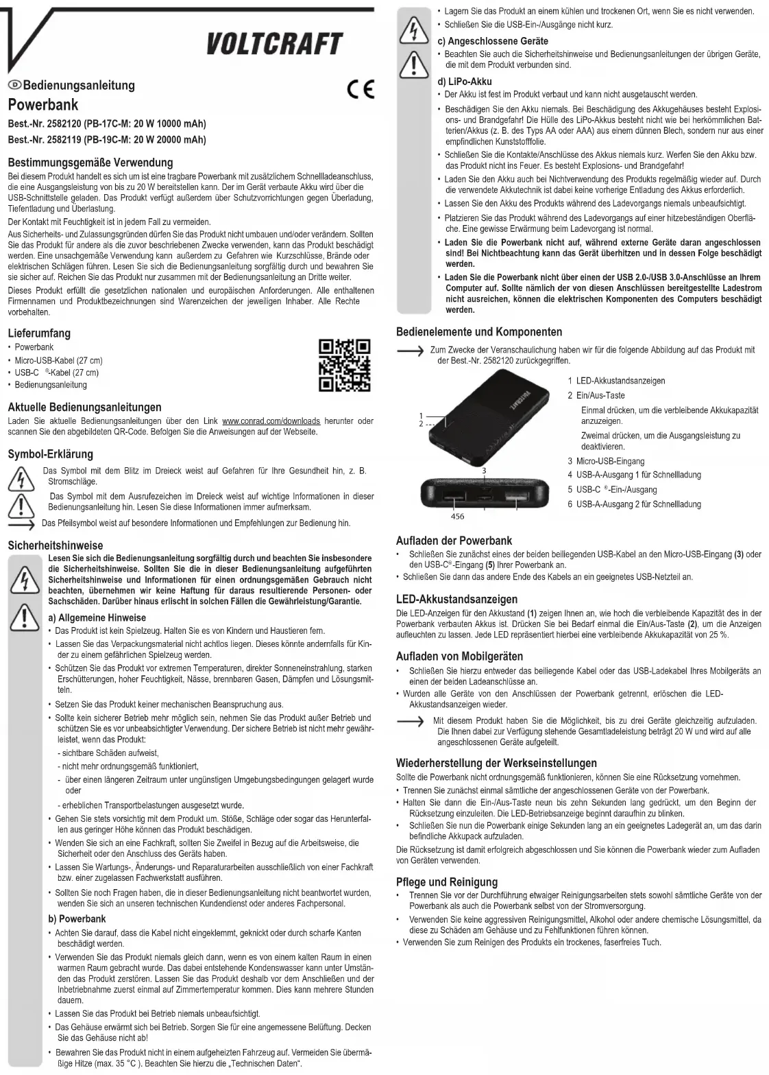 PB19CM - Batterie portable VOLTCRAFT - Notice d'utilisation et mode d'emploi gratuit