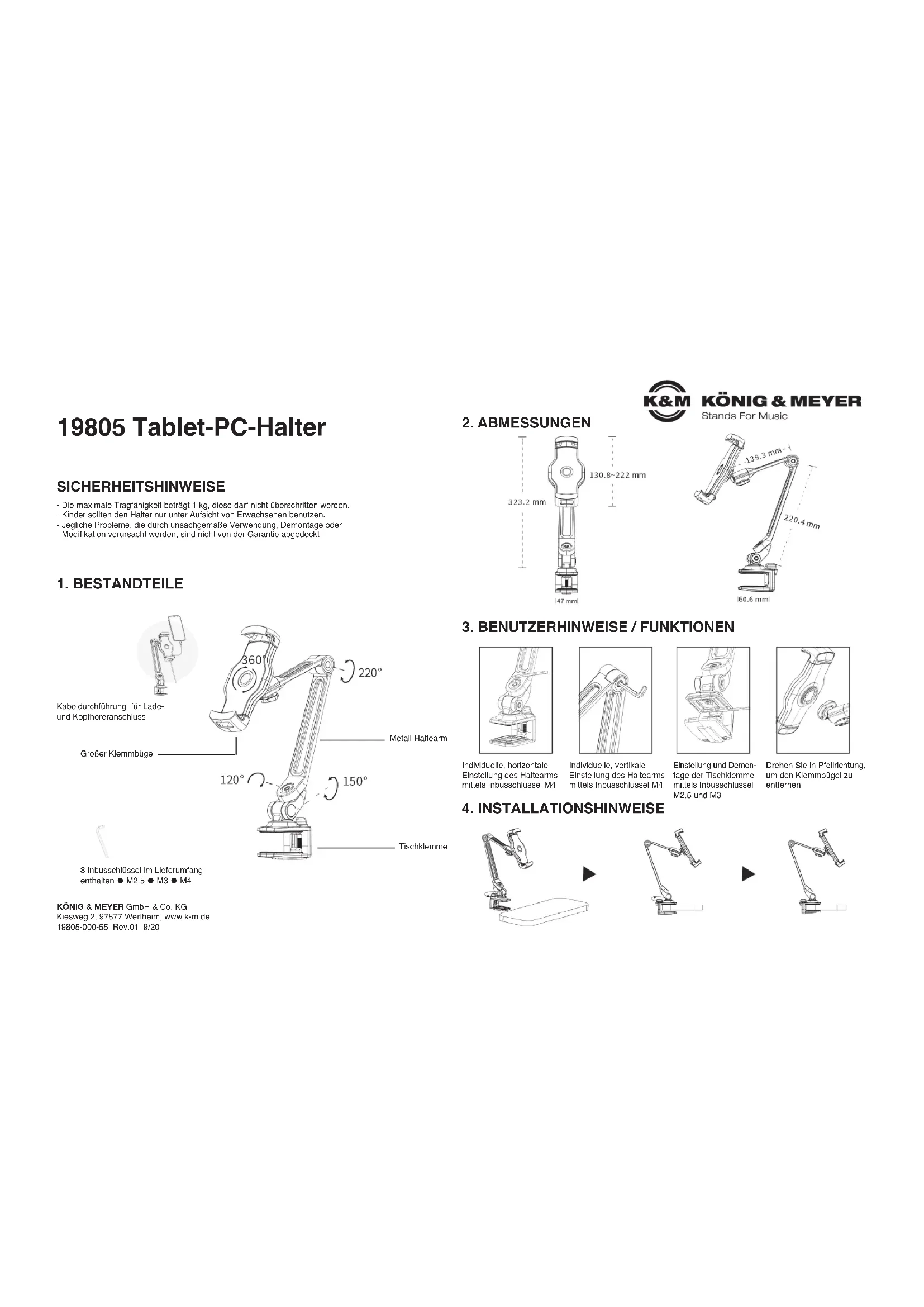 19805 - Support pour tablette K&M - Notice d'utilisation et mode d'emploi gratuit