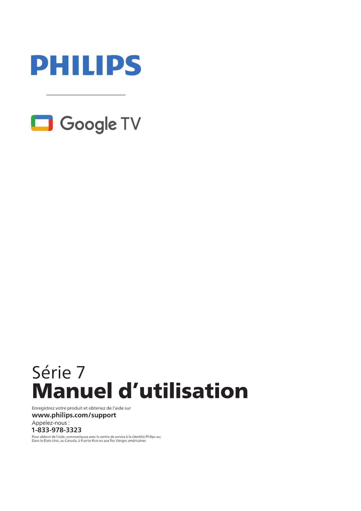 Manuel d’utilisation Pour obtenir de l’aide, communiquez avec le centre de service à la clientèle Philips au;Dans le États-Unis, au Canada, à Puerto Rico ou aux Îles Vierges américaines www.philips.com/support Série 7 1-833-978-3323 Appelez-nous : Enregistrez votre produit et obtenez de l'aide surTable des matières 1 Avis ............................................................................................... 4 Consignes importantes de sécurité