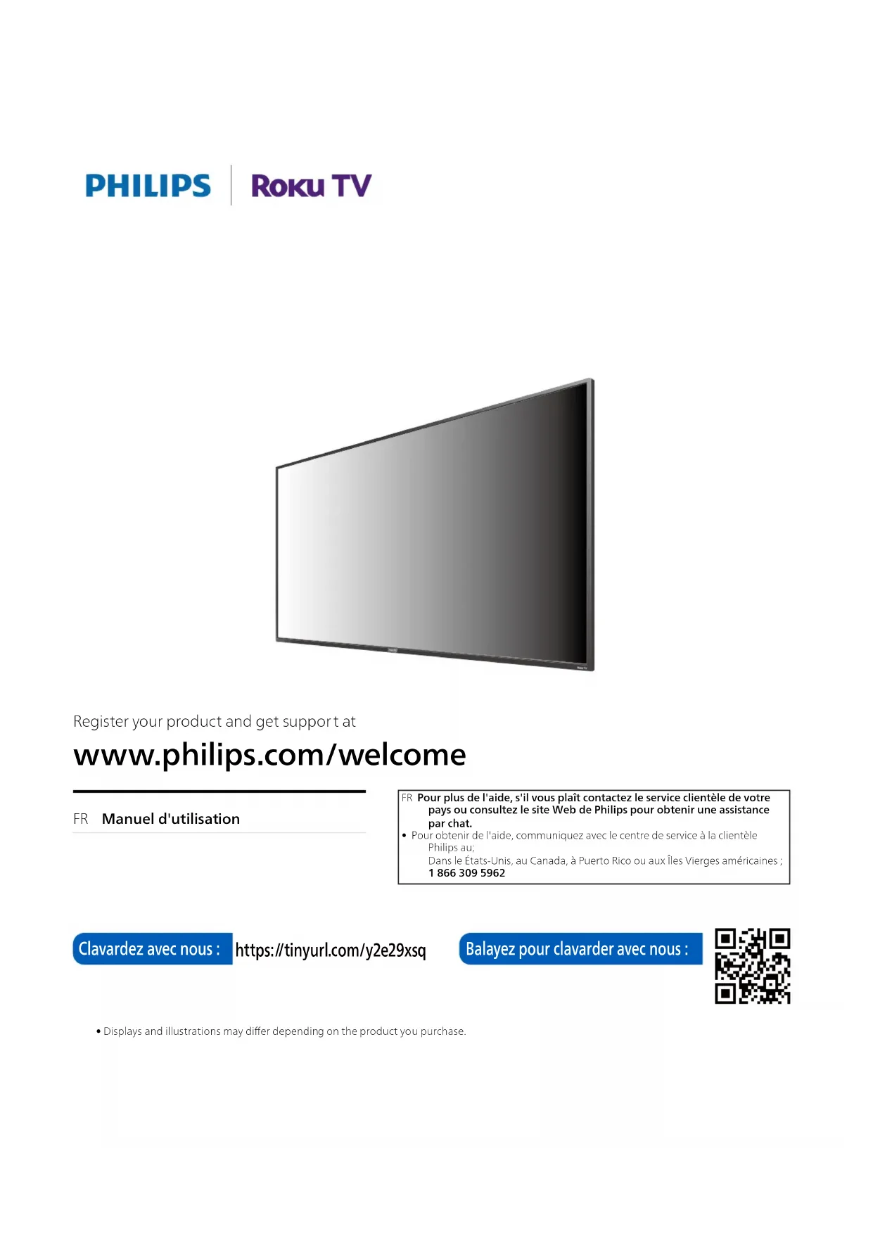 Register your productand getsupport at www.philips.com/welcome FR Manuel d'utilisation FR Pour plus de l'aide, s'il vous plaît contactez le service clientèle de votre pays ou consultez le site Web de Philips pour obtenir une assistance par chat.