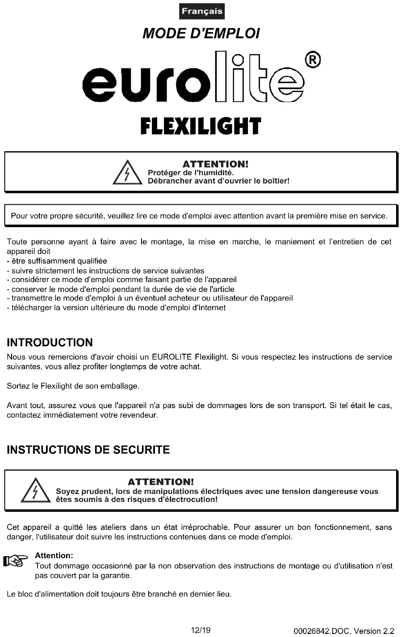 MODE D'EMPLOI Flexilight Eurolite