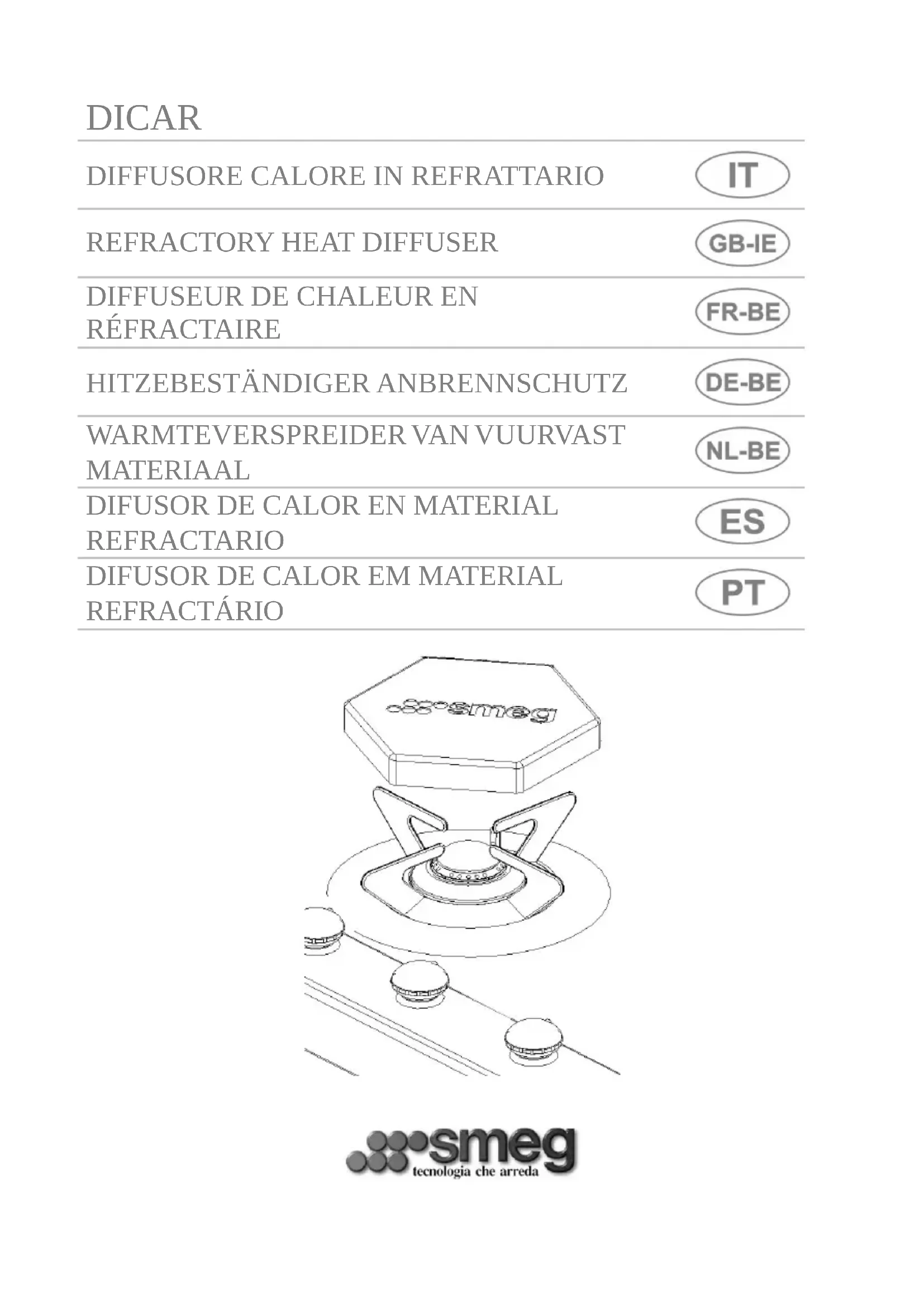 - DICAR peut être utilisé sur toutes les tables de cuisson Smeg. UTILISATION