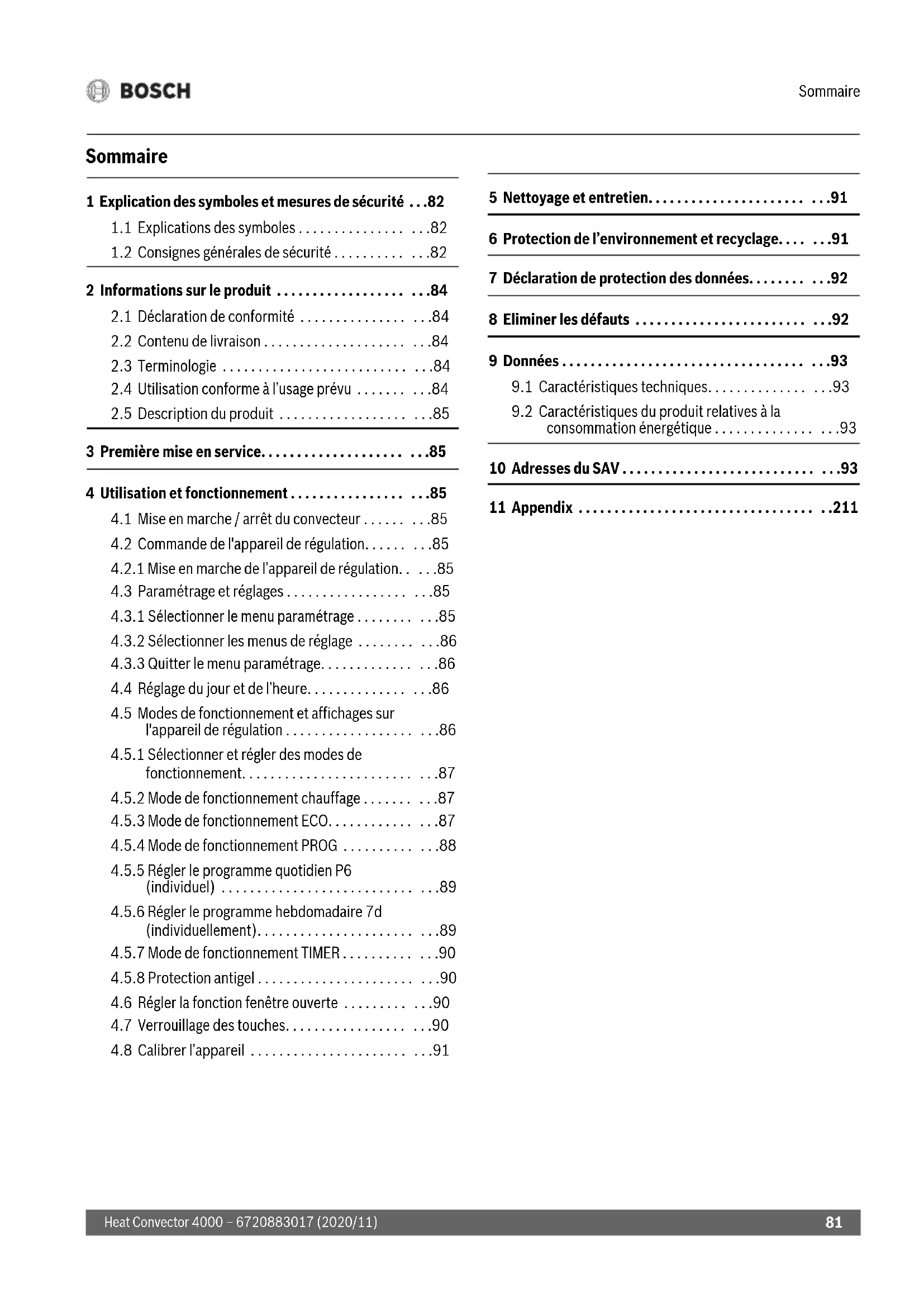 consommation énergétique . . . . . . . . . . . . . . . . .93 10 Adresses du SAV . . . . . . . . . . . . . . . . . . . . . . . . . . . . . .93 11 Appendix . . . . . . . . . . . . . . . . . . . . . . . . . . . . . . . . . . .211Explication des symboles et mesures de sécurité Heat Convector 4000 – 6720883017 (2020/11)