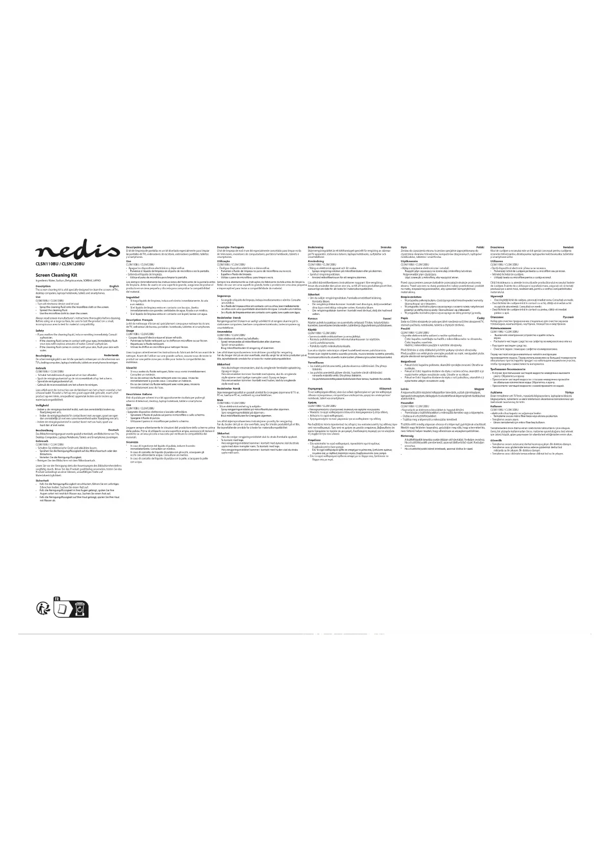 Si el líquido de limpieza entra en contacto con la piel, lávese con agua. Description Français Le kit de nettoyage d’écran est spécialement conçu pour nettoyer les écrans de TV, ordinateurs de bureau, portables /notebooks, tablettes et smartphones. Usage