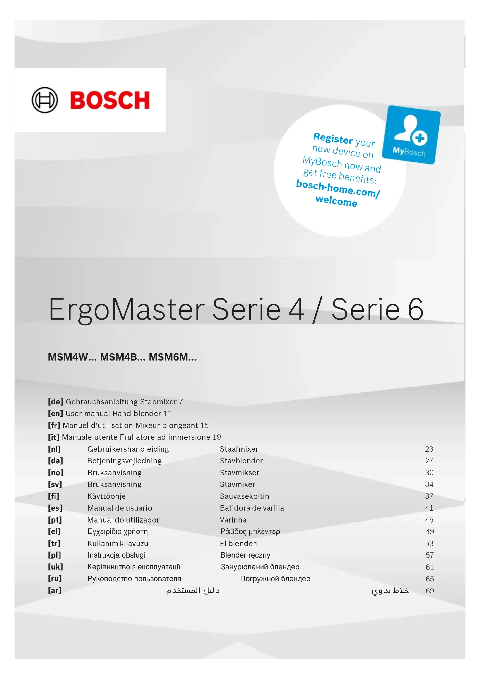 Retrouvez gratuitement la notice de l'appareil MSM4B610 BOSCH au format PDF.