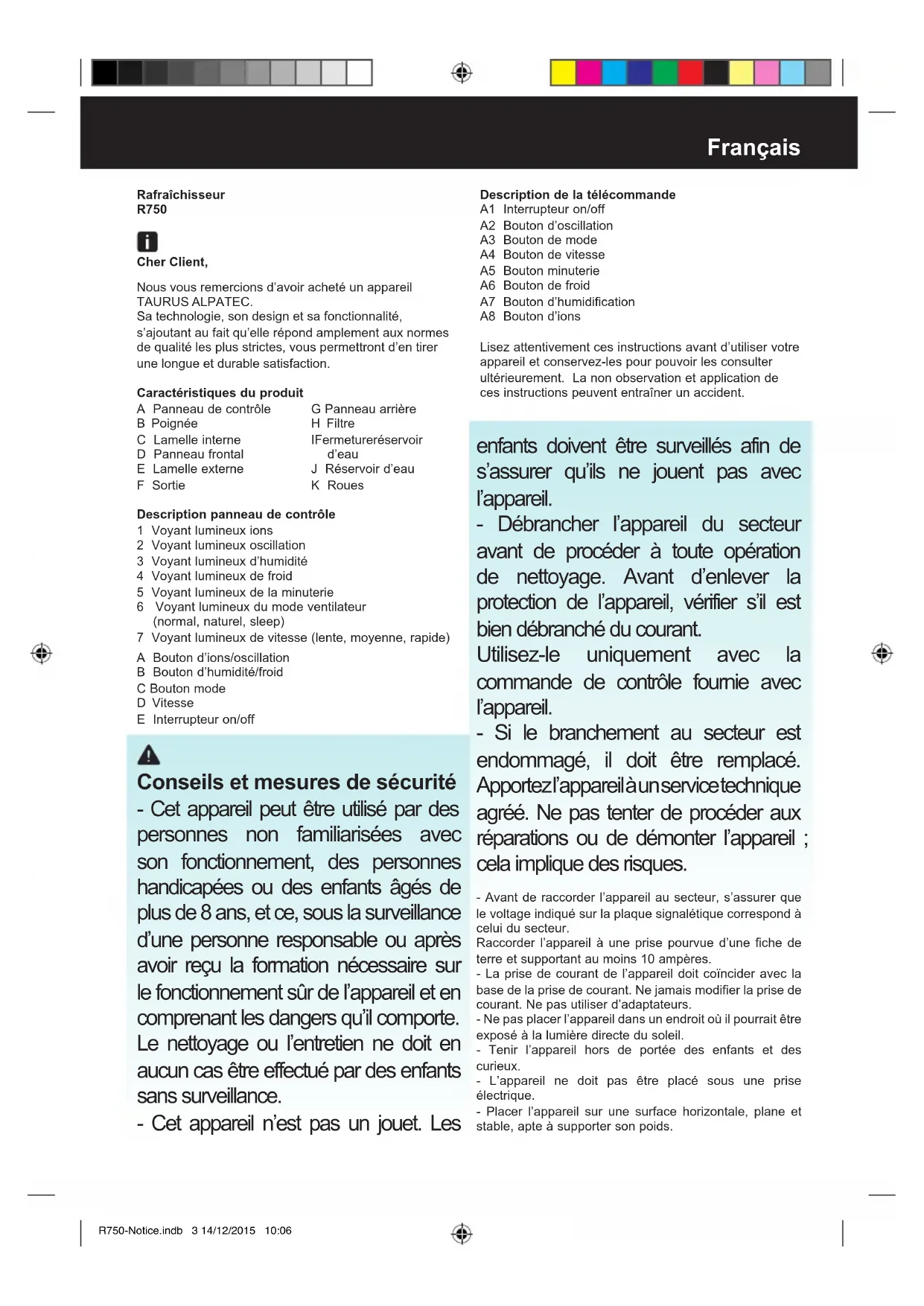 Retrouvez gratuitement la notice de l'appareil R750 TAURUS au format PDF.