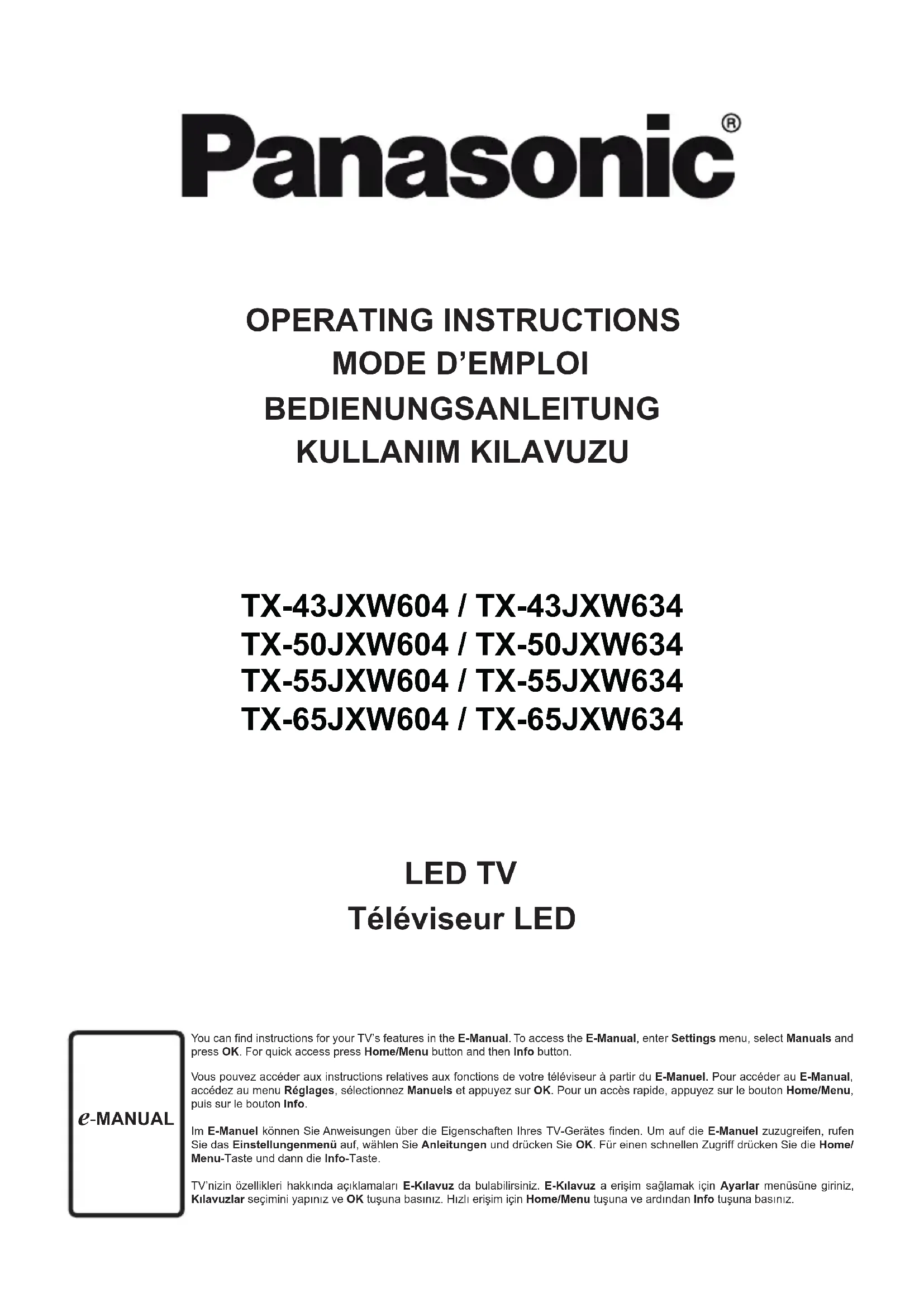Retrouvez gratuitement la notice de l'appareil TX43JXW604 PANASONIC au format PDF.