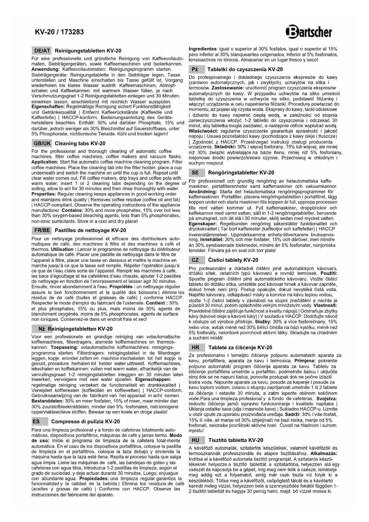 KV20 - La solution de nettoyage BARTSCHER - Notice d'utilisation et mode d'emploi gratuit
