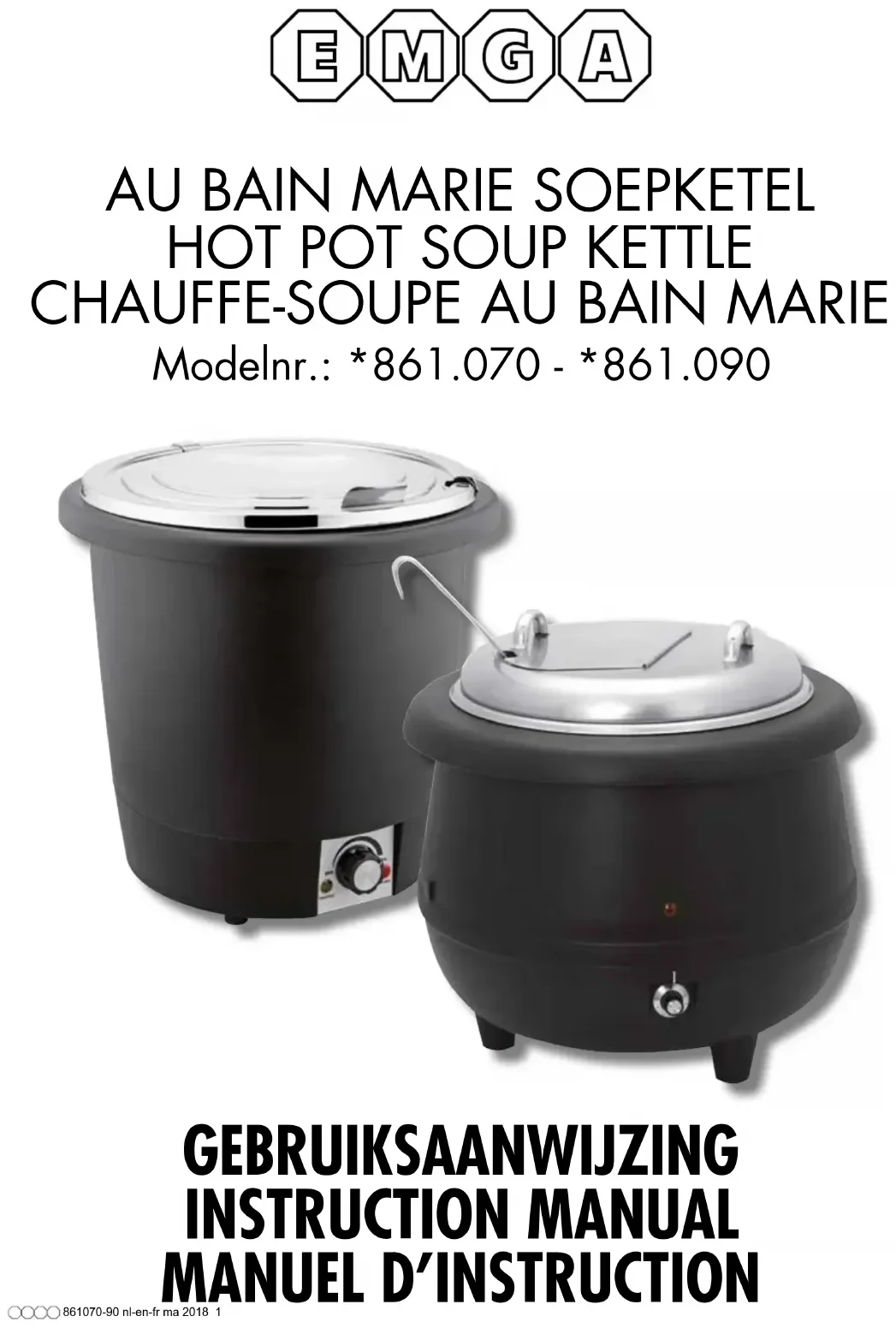Téléchargez la notice de votre Appareil à soupe au format PDF gratuitement ! Retrouvez votre notice 861090 - Emga et reprennez votre appareil électronique en main. Sur cette page sont publiés tous les documents nécessaires à l'utilisation de votre appareil 861090 de la marque Emga.