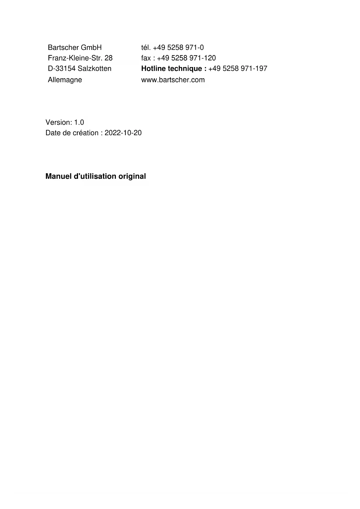 MODE D'EMPLOI TBGN110 BARTSCHER