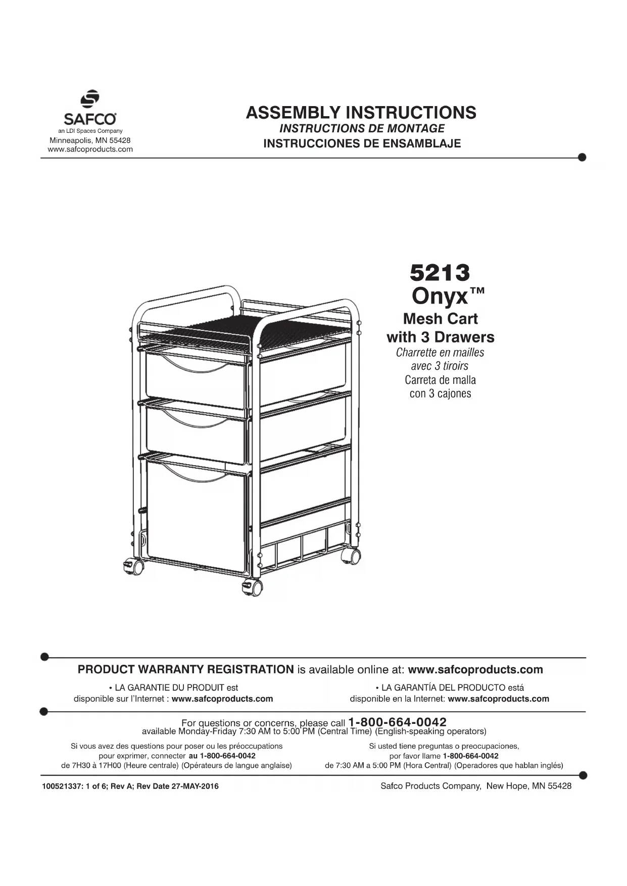 5213 - Chariot de rangement Safco - Notice d'utilisation et mode d'emploi gratuit