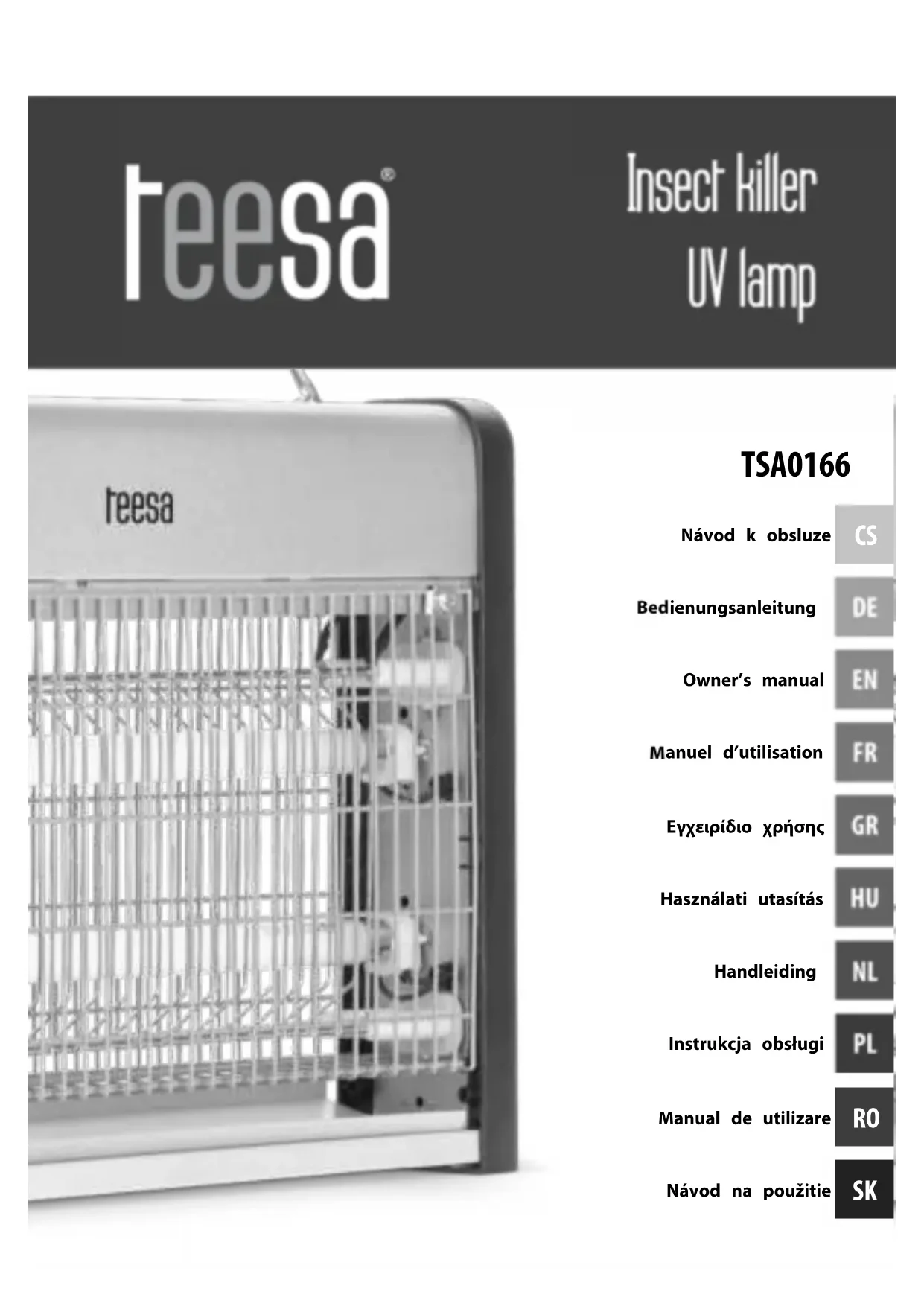 Matériau: ABS, aluminium, métal Type de lampe: UV-A T5 d’un diamètre de 26 mm, culot G13 La puissance des lampes uorescentes: 2 x 15 W Durée de vie de la lampe: jusqu'à 5000 heures Rayon d’action: 100 m