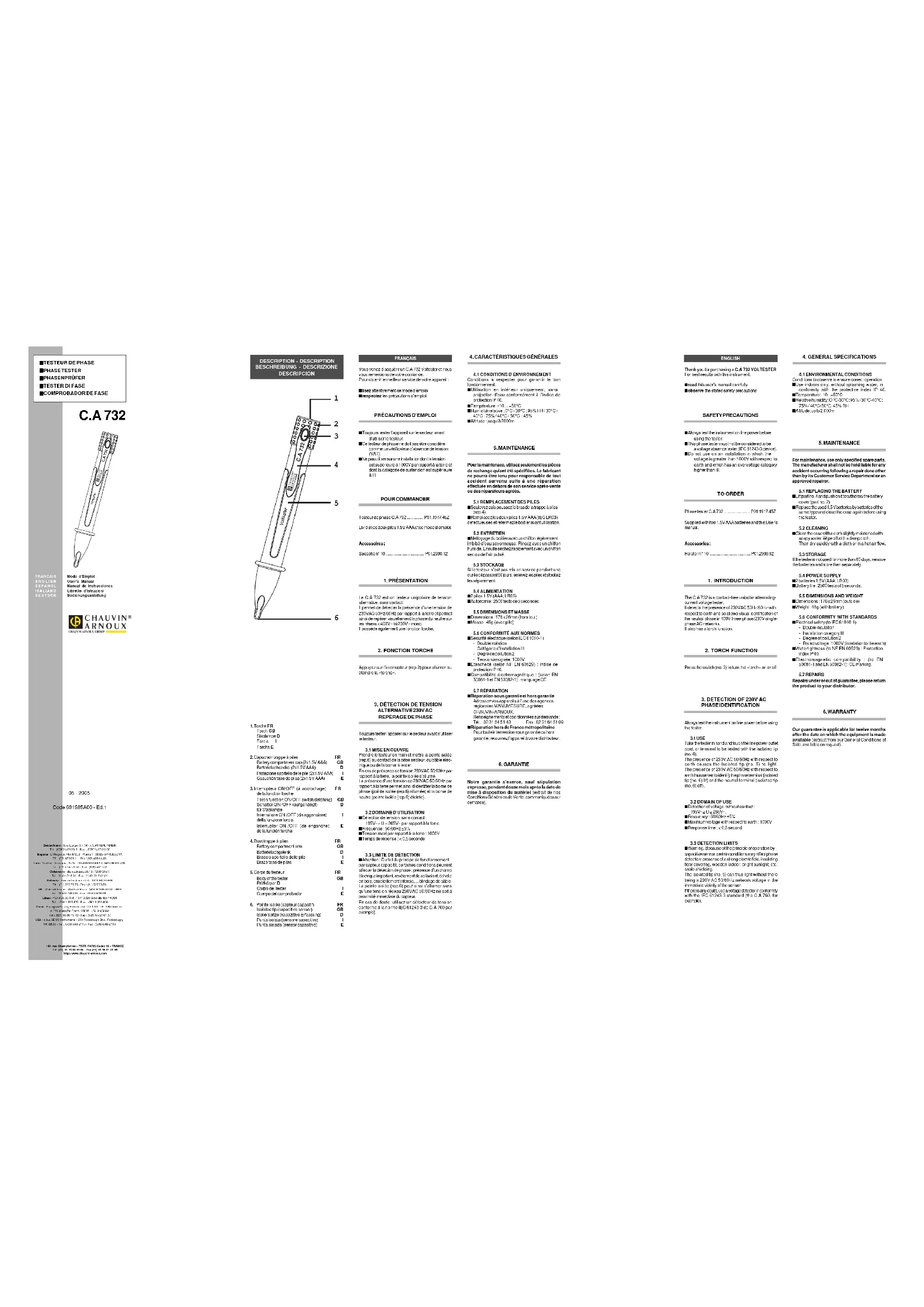 FRANÇAISVous venez d’acquérir un C.A 732 Voltester et nousvous remercions de votre confiance.Pour obtenir le meilleur service de votre appareil :■ lisez attentivement ce mode d’emploi■ respectez les précautions d’emploi.