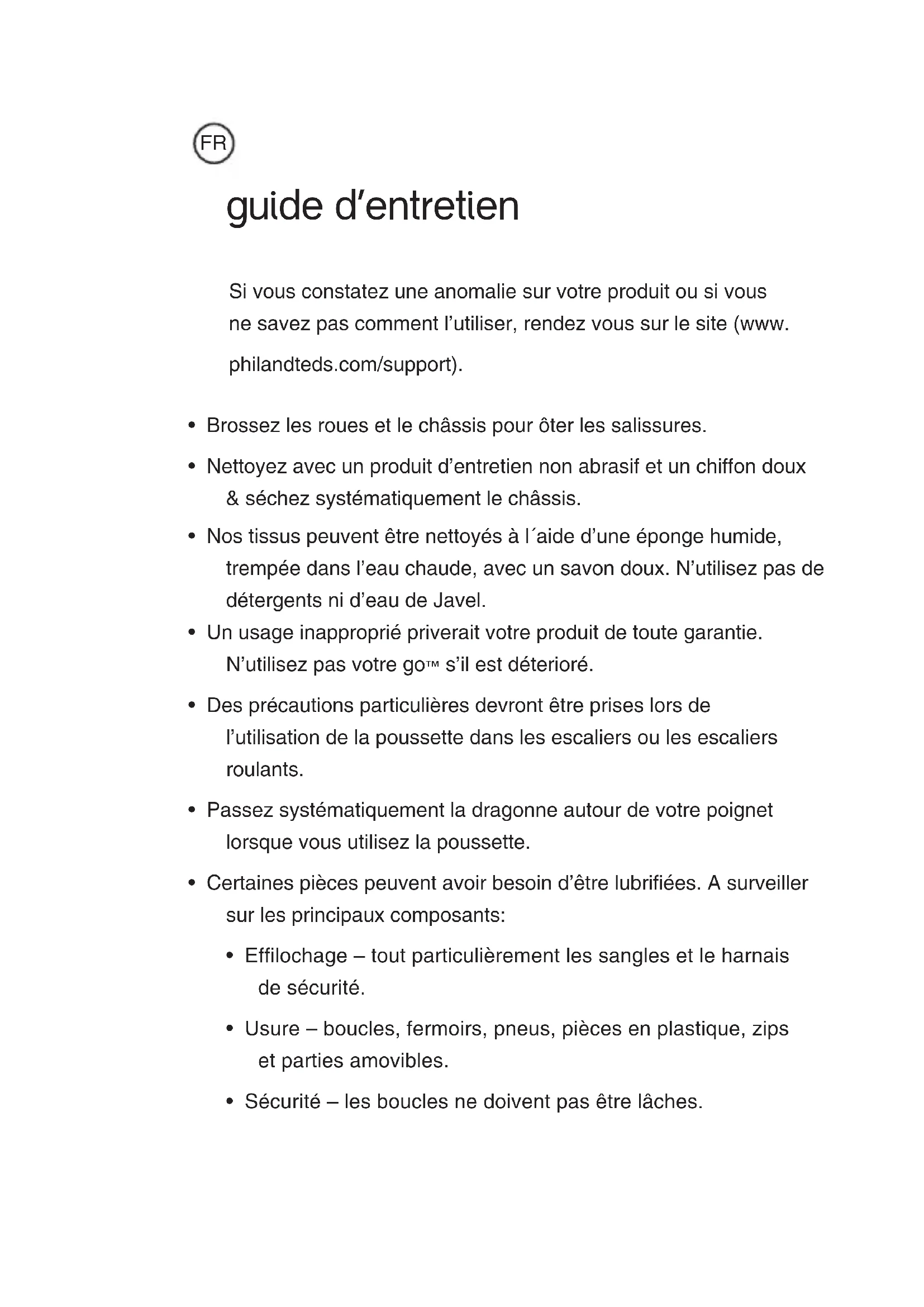 - Sécurité – les boucles ne doivent pas être lâches. Si vous constatez une anomalie sur votre produit ou si vous ne savez pas comment l’utiliser, rendez vous sur le site (www. philandteds.com/support). FR29 EVA pneus