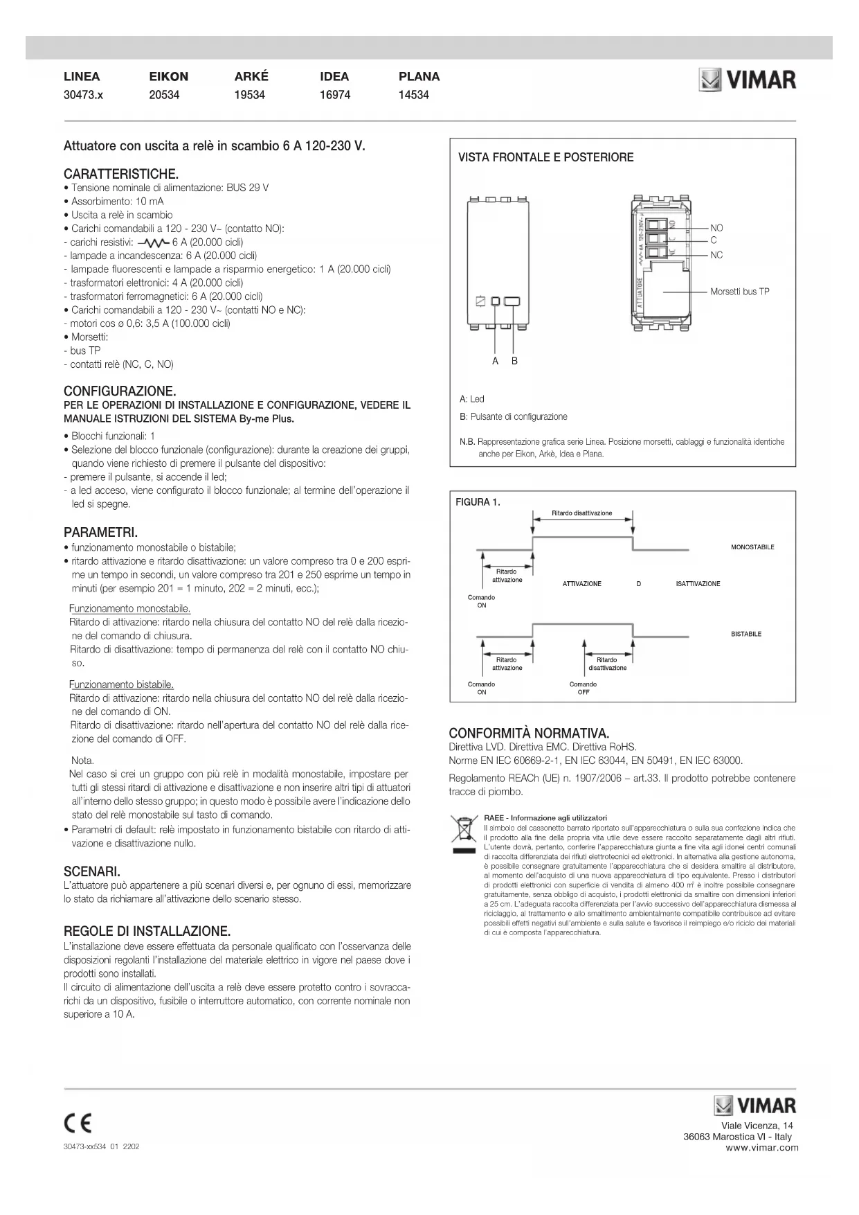 19534.B - Relais électrique Vimar - Notice d'utilisation et mode d'emploi gratuit