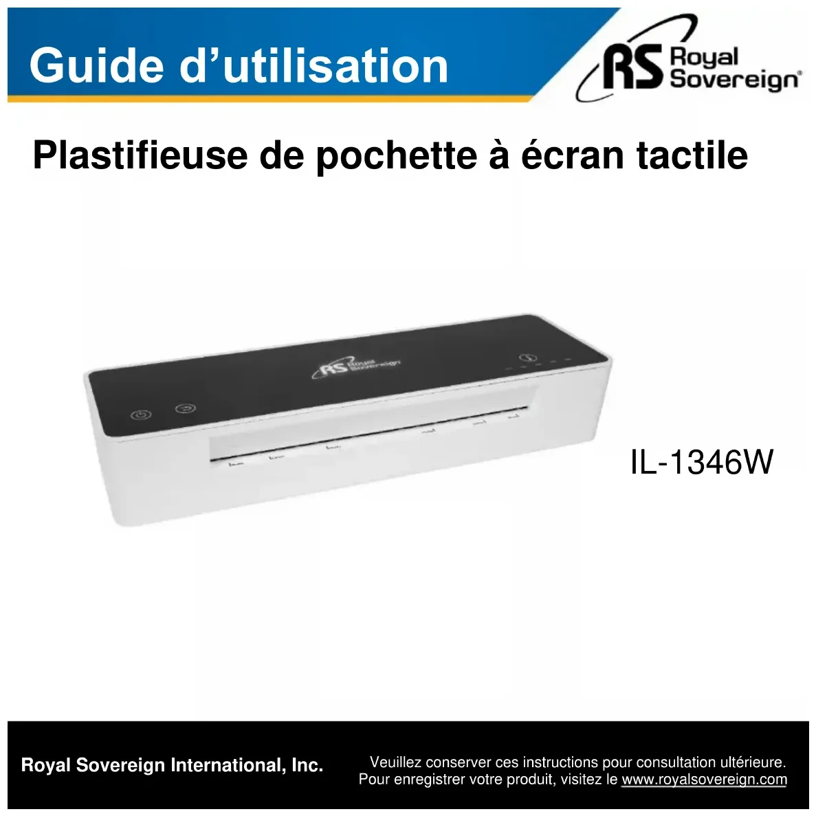 IL1346W - Machine à laminer Royal Sovereign - Notice d'utilisation et mode d'emploi gratuit