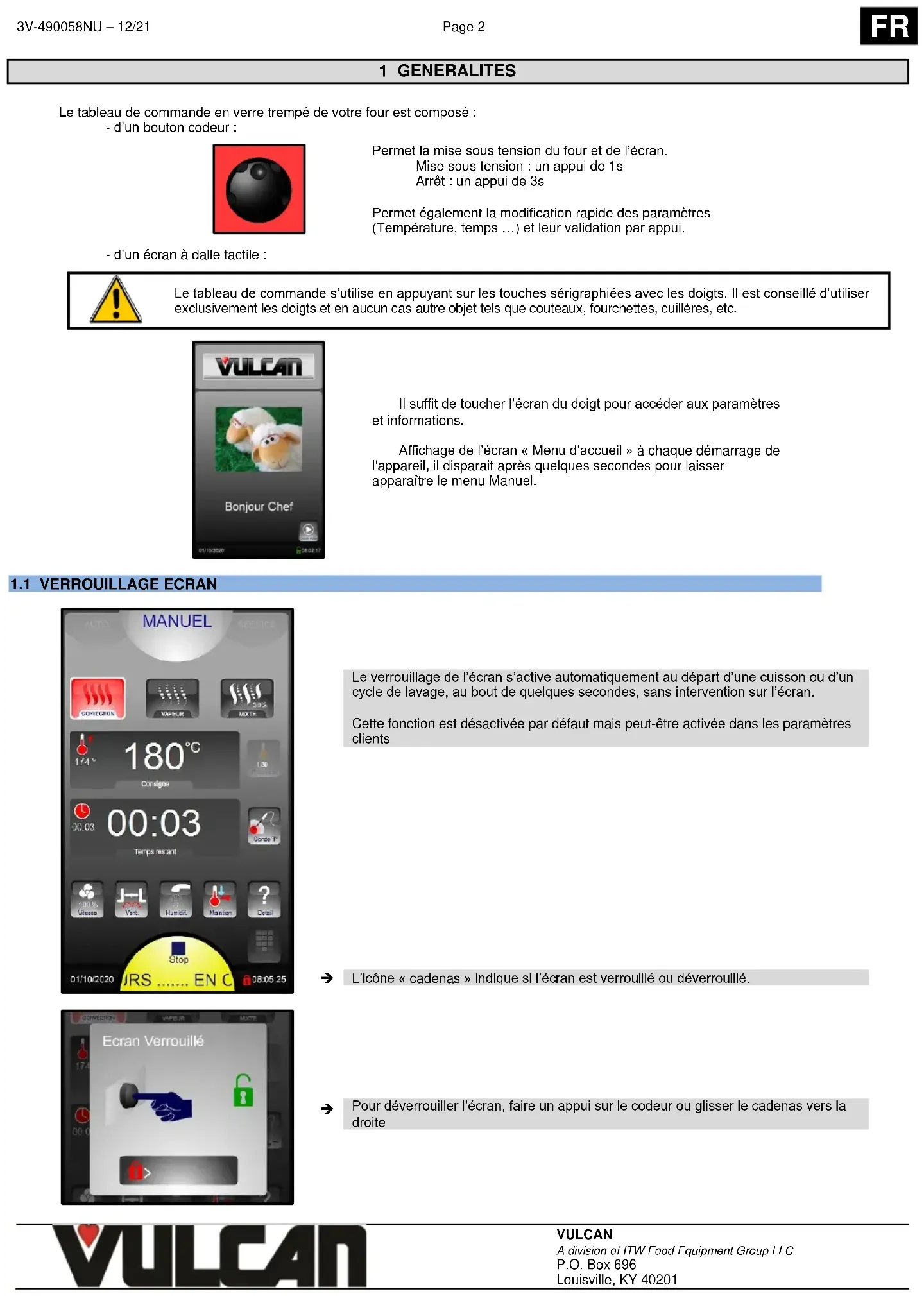 Pour déverrouiller l’écran, faire un appui sur le codeur ou glisser le cadenas vers la droite3V-490058NU – 12/21 Page 3