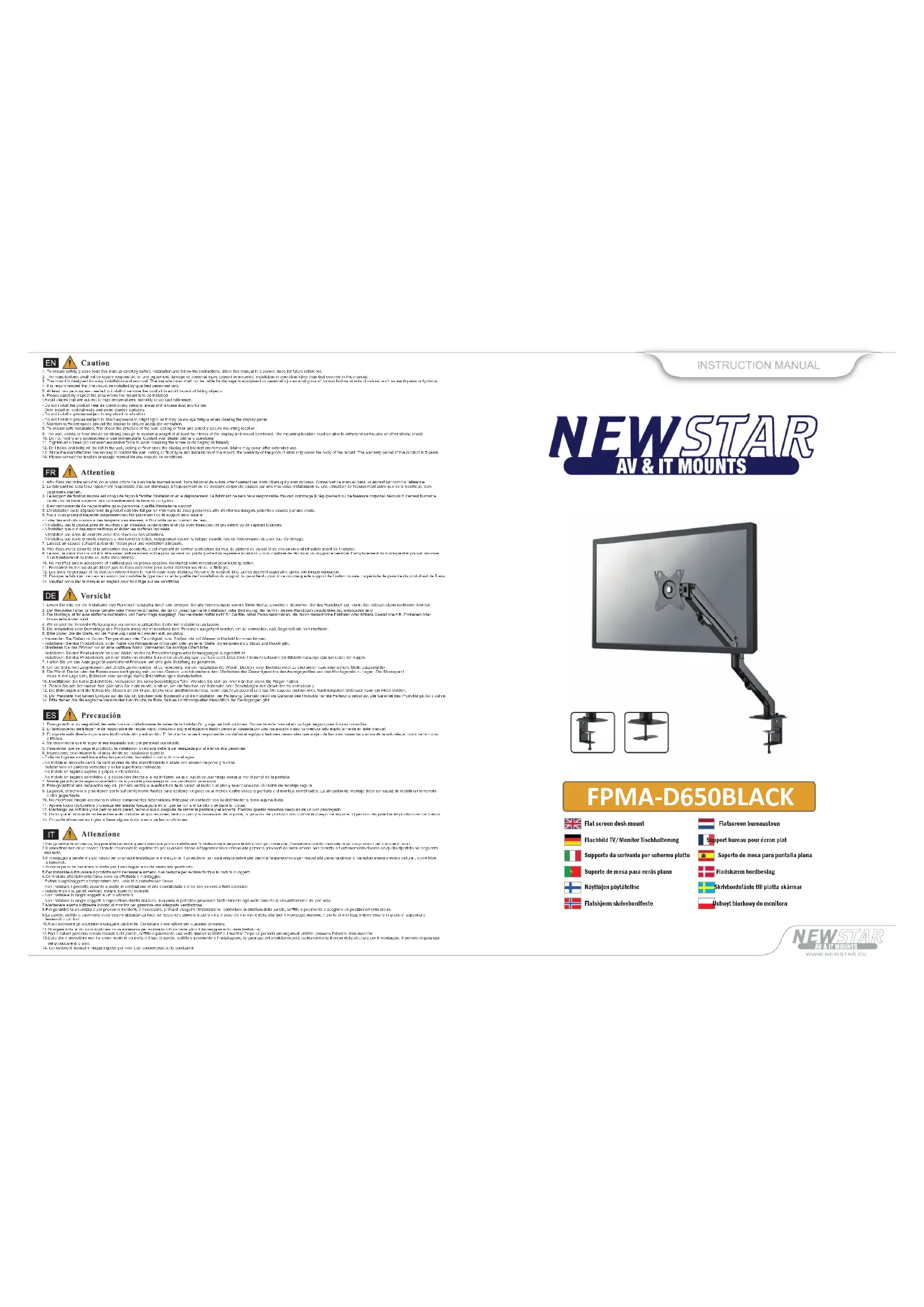 FPMAD650D - Support écran plat Newstar - Notice d'utilisation et mode d'emploi gratuit