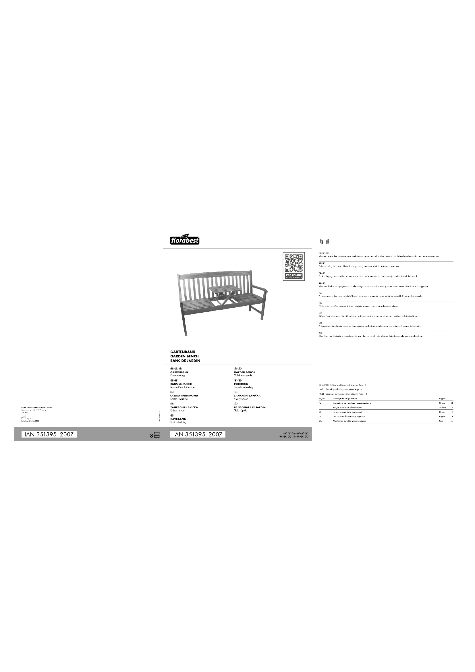IAN 351395 - Mobilier de jardin FLORABEST - Notice d'utilisation et mode d'emploi gratuit