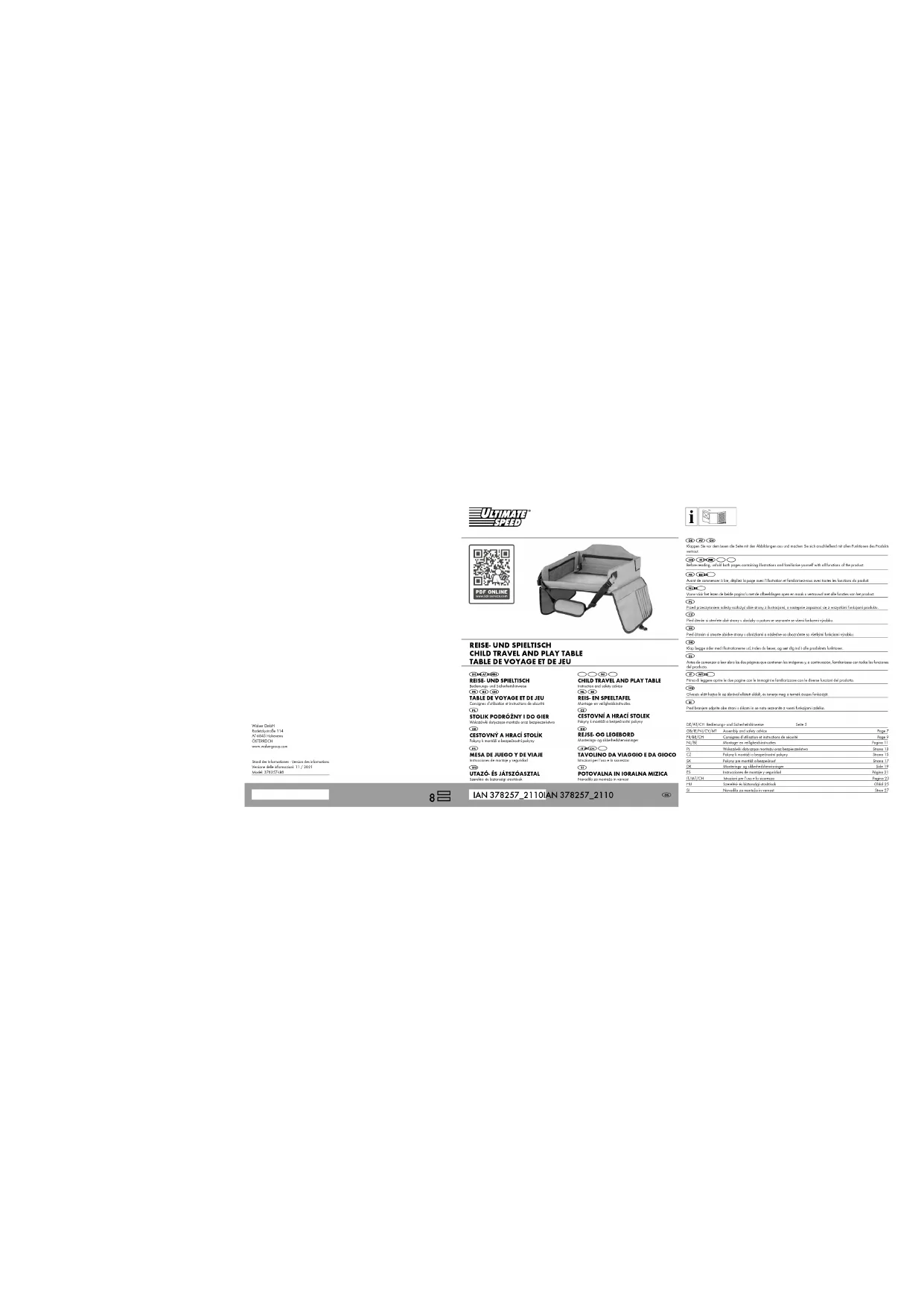 Table de voyage et de jeu Généralités Lisez et conservez le présent mode d‘emploi Félicitations pour votre achat ! Vous avez choisi un produit de qualité supérieure. Ce mode d’emploi fait partie de cette table de voyage et de jeu (ci-après dénommée « le produit »). Veu- illez lire attentivement ces instructions, en particulier les con- signes de sécurité, avant d‘utiliser le produit pour la première fois et n‘utilisez ce produit que de la manière décrite dans ce mode d’emploi. Conservez ce mode d’emploi pour pouvoir vous y référer ulté- rieurement et incluez-le si vous transmettez ce produit à des tiers. Explication des symboles Les symboles et les mots de signalisation suivants sont utilisés dans ce mode d‘emploi, sur le produit ou sur l‘emballage. Lisez le mode d’emploi avant l’utilisation ! Ce symbole / mot indique une situa- tion comportant un risque moyen, et si elle persiste, elle peut entraîner la mort ou des blessures graves. Ce symbole / mot met en garde contre d’éventuels dommages matériels. Les produits portant ce symbole répondent aux exigences des directives de l’UE. La déclaration de conformité peut être sollicitée auprès du fabri- cant. Ce symbole indique des informations complémentai- res utiles. Utilisation conforme Ce produit est destiné à être utilisé en voiture, en avion ou en train. Ce produit est uniquement destiné à un usage privé et ne convient pas à un usage commercial. Instructions de sécurité Dangers dus à une mauvai- se utilisation ! - Un produit non fixé peut, par exemple, voler à travers la voi- ture lors d’un freinage violent. Attachez toujours cette table de voyage avec la sangle au siège enfant ou à l‘enfant. - Ne laissez pas les enfants sans surveillance avec ce produit. Évitez les dommages matériels ! - Le matériau de ce produit n’est pas approprié pour un con- tact avec des aliments non emballés. Ne stockez pas d‘ali- ments non emballés sur ce produit ni dans les poches. - Il n’est possible de dessiner sur le film essuyable qu‘avec des stylos hydrosolubles. - Ne stockez pas de boissons ni d’objets lourds sur ce produit. Contenu de la livraison