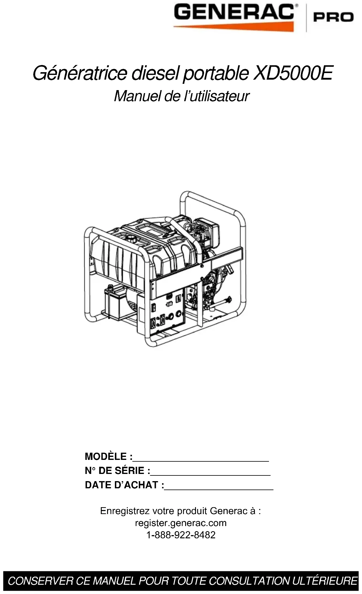 Retrouvez gratuitement la notice de l'appareil XD5000E Generac au format PDF.