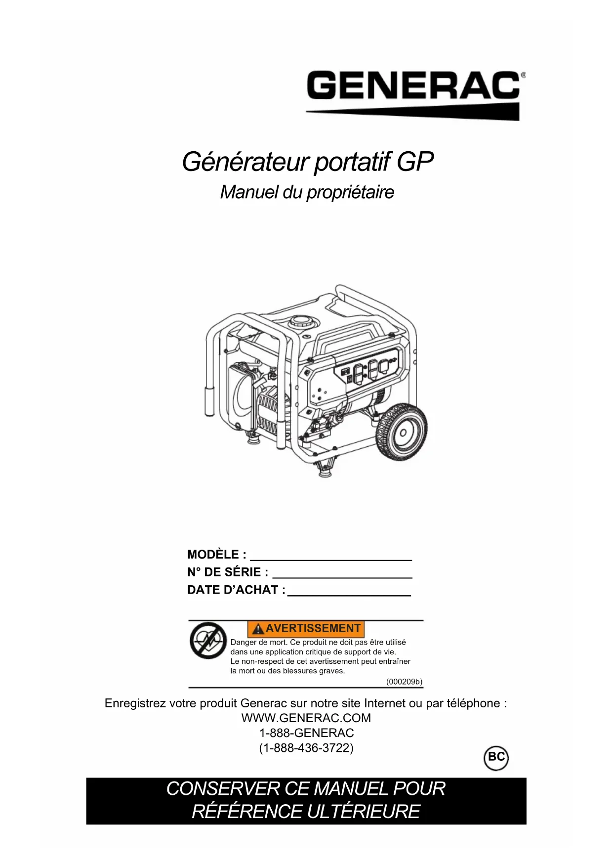 GP6500E - Générateur Generac - Notice d'utilisation et mode d'emploi gratuit