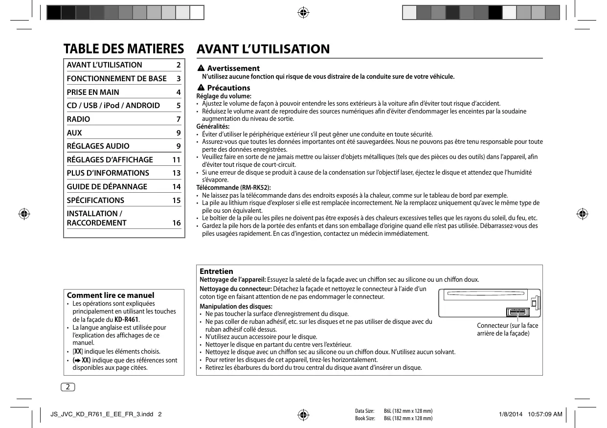 MODE D'EMPLOI KD-R461 JVC