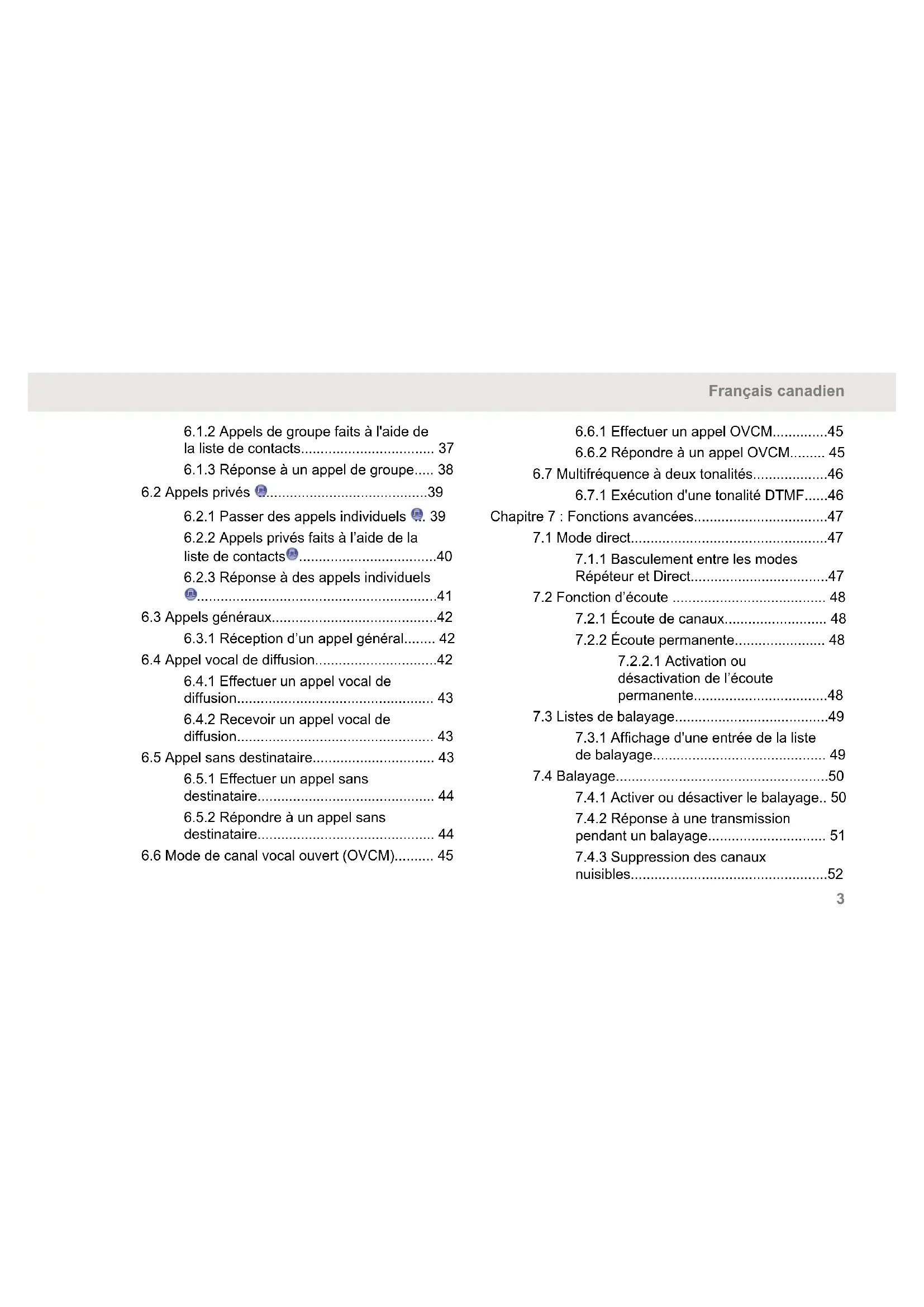 6.4 Appel vocal de diffusion...............................42