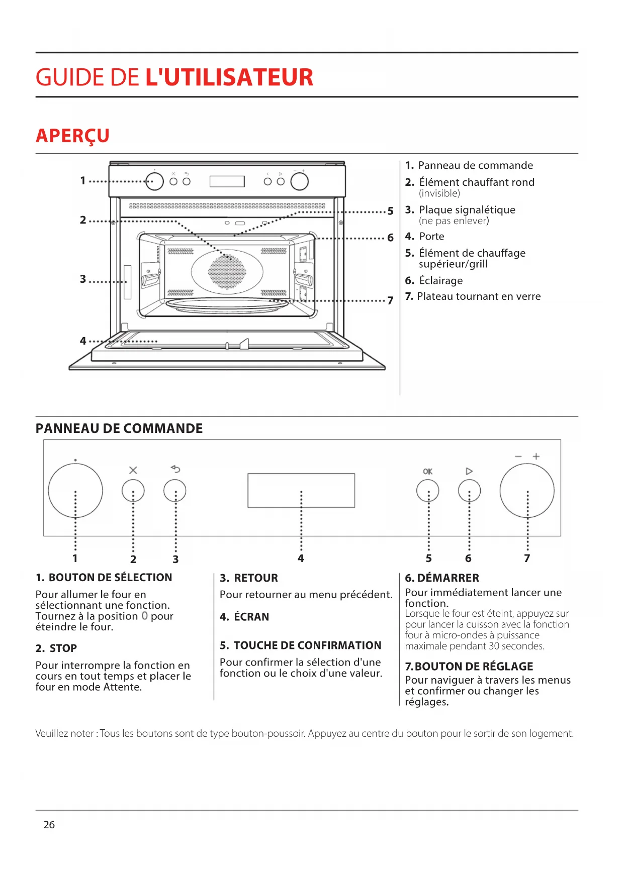 Veuillez noter: Tous les boutons sont de type bouton-poussoir. Appuyez au centre du bouton pour le sortir de son logement.FR
