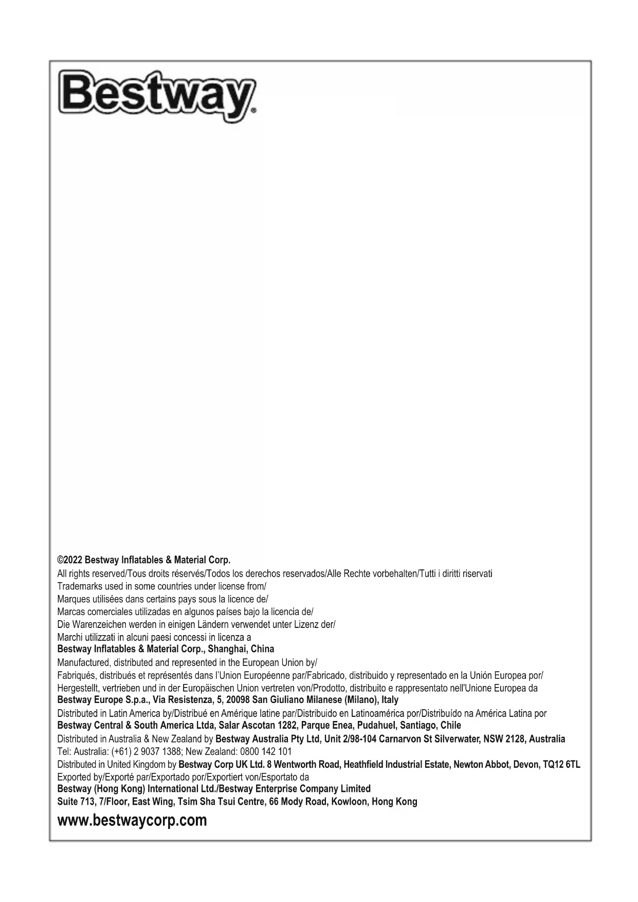MODE D'EMPLOI 22039 BESTWAY