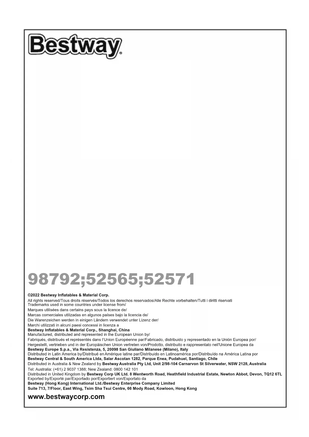 Retrouvez gratuitement la notice de l'appareil 52571 BESTWAY au format PDF.