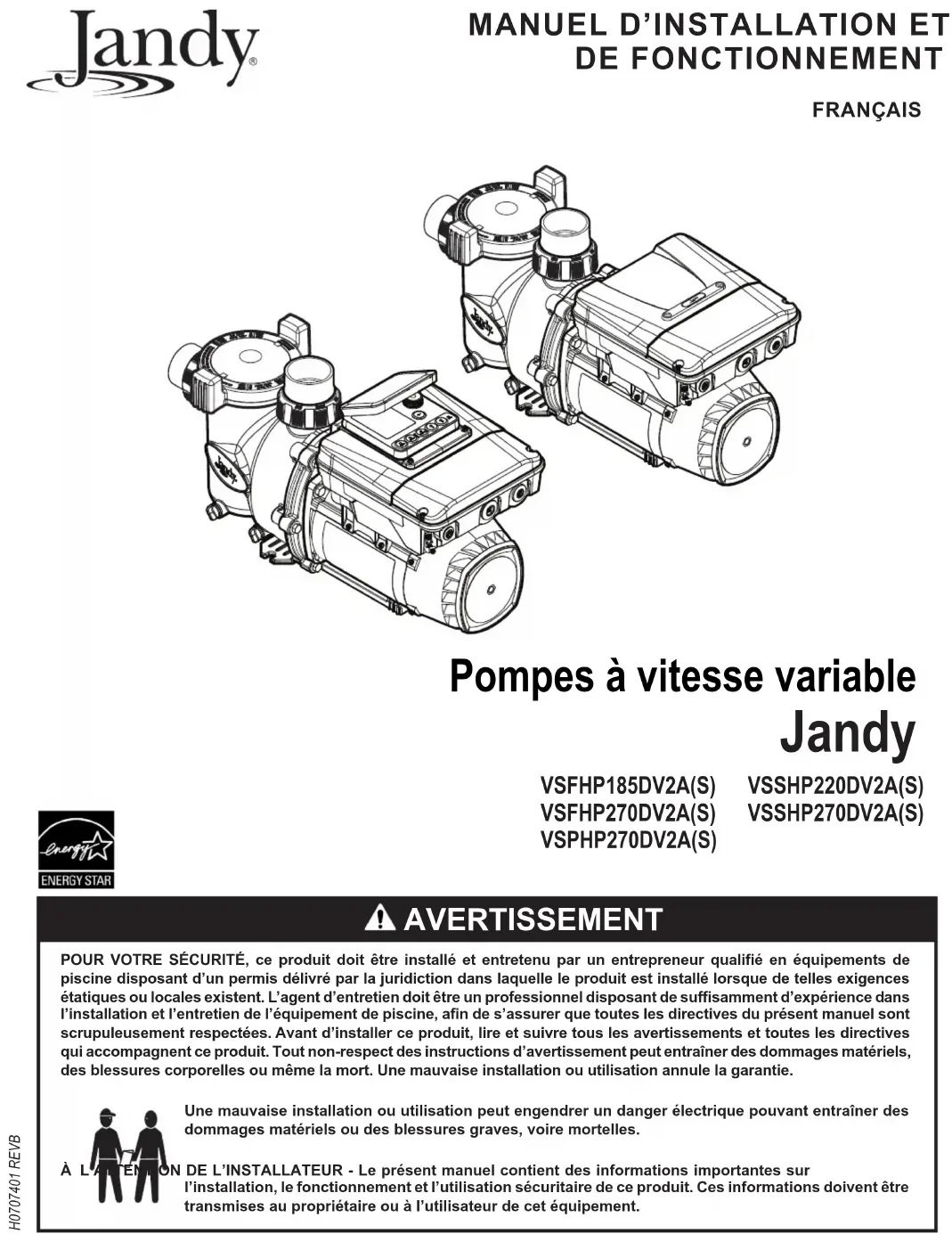 VS FloPro - Pompe Jandy - Notice d'utilisation et mode d'emploi gratuit