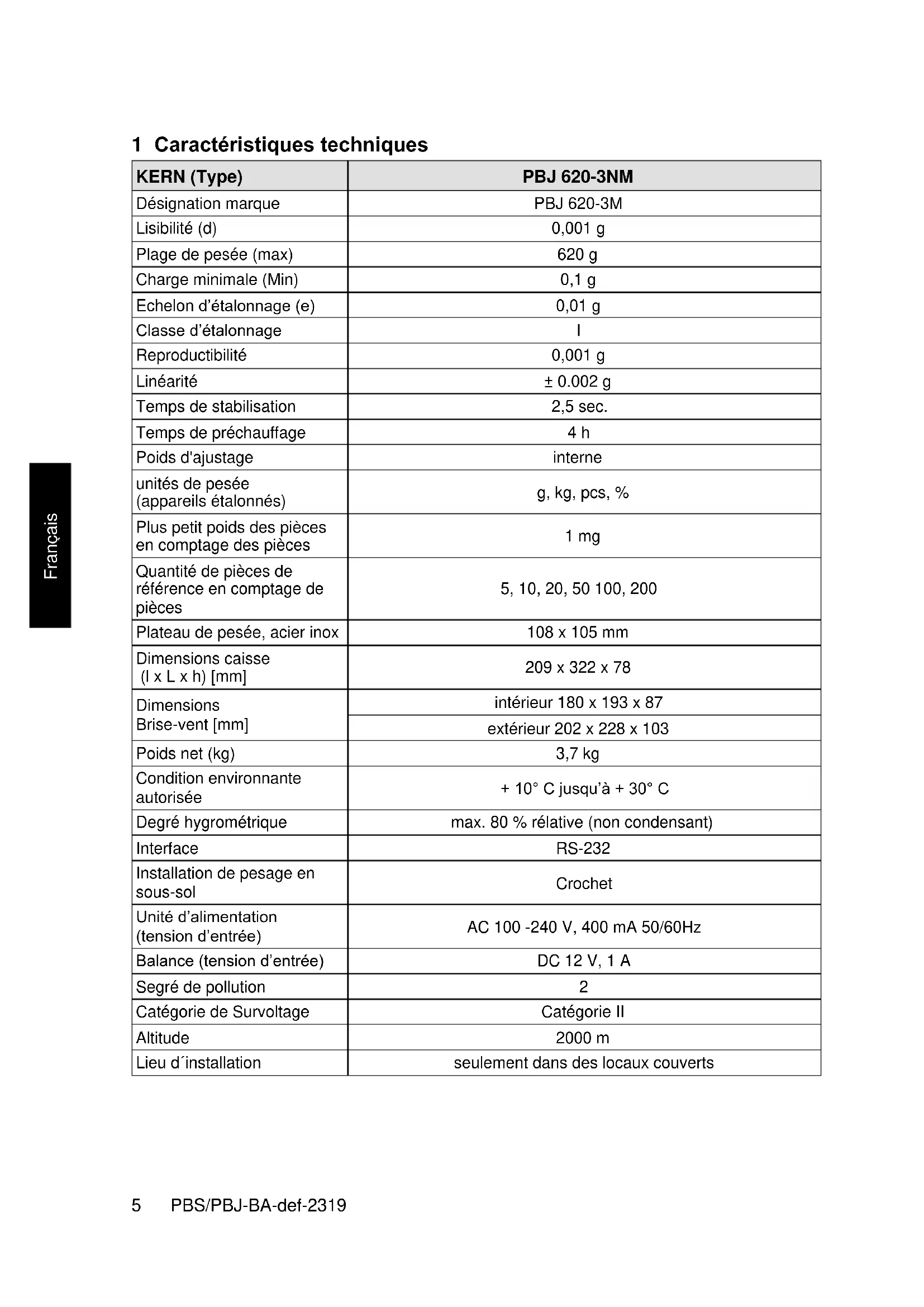 Catégorie de Survoltage Catégorie II Altitude 2000 m Lieu d´installation seulement dans des locaux couvertsPBS/PBJ-BA-def-2319 6 Français KERN (Type)