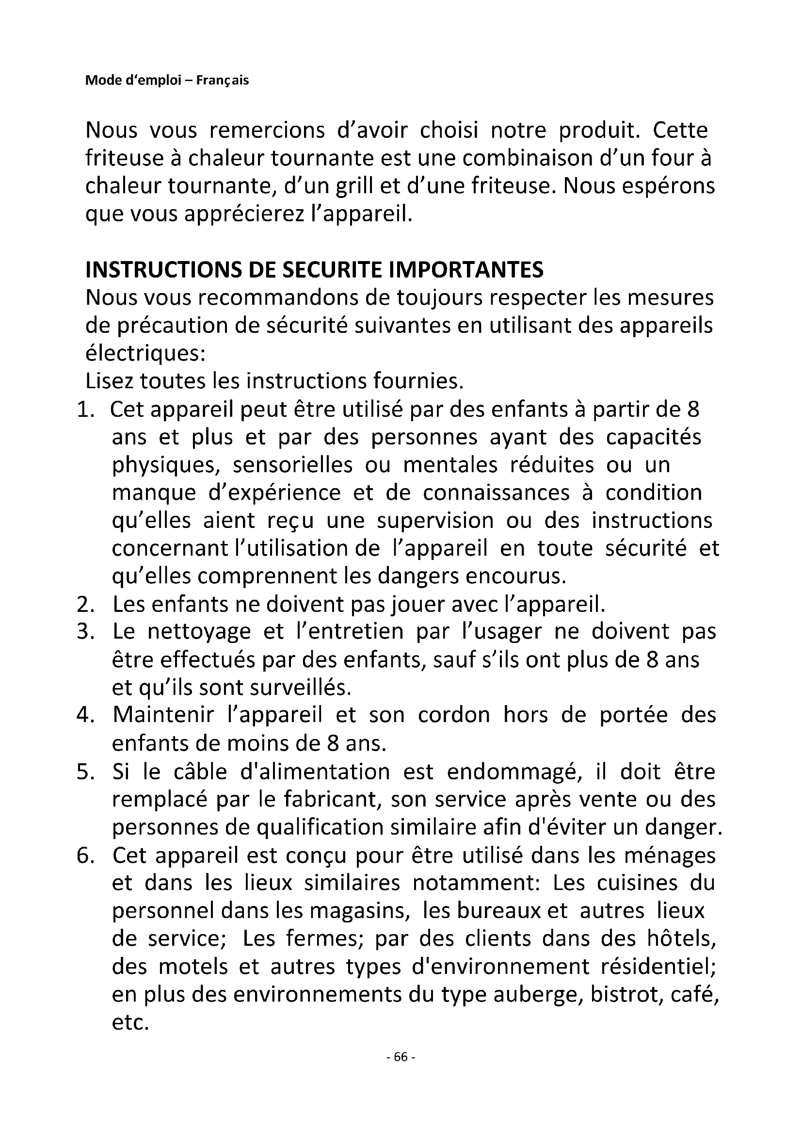 6. Cet appareil est conçu pour être utilisé dans les ménages