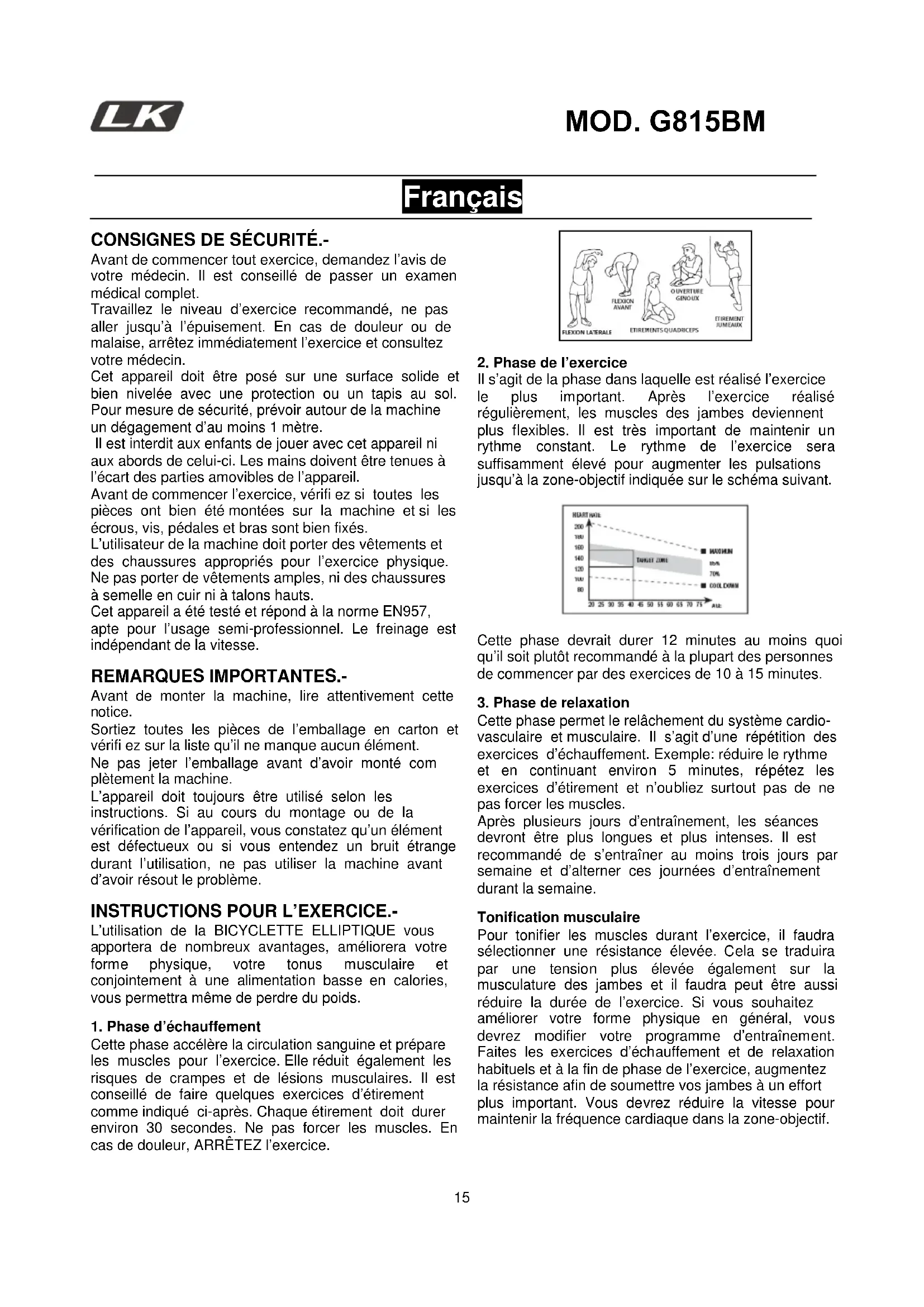 MODE D'EMPLOI LK8150 (TV) BH FITNESS