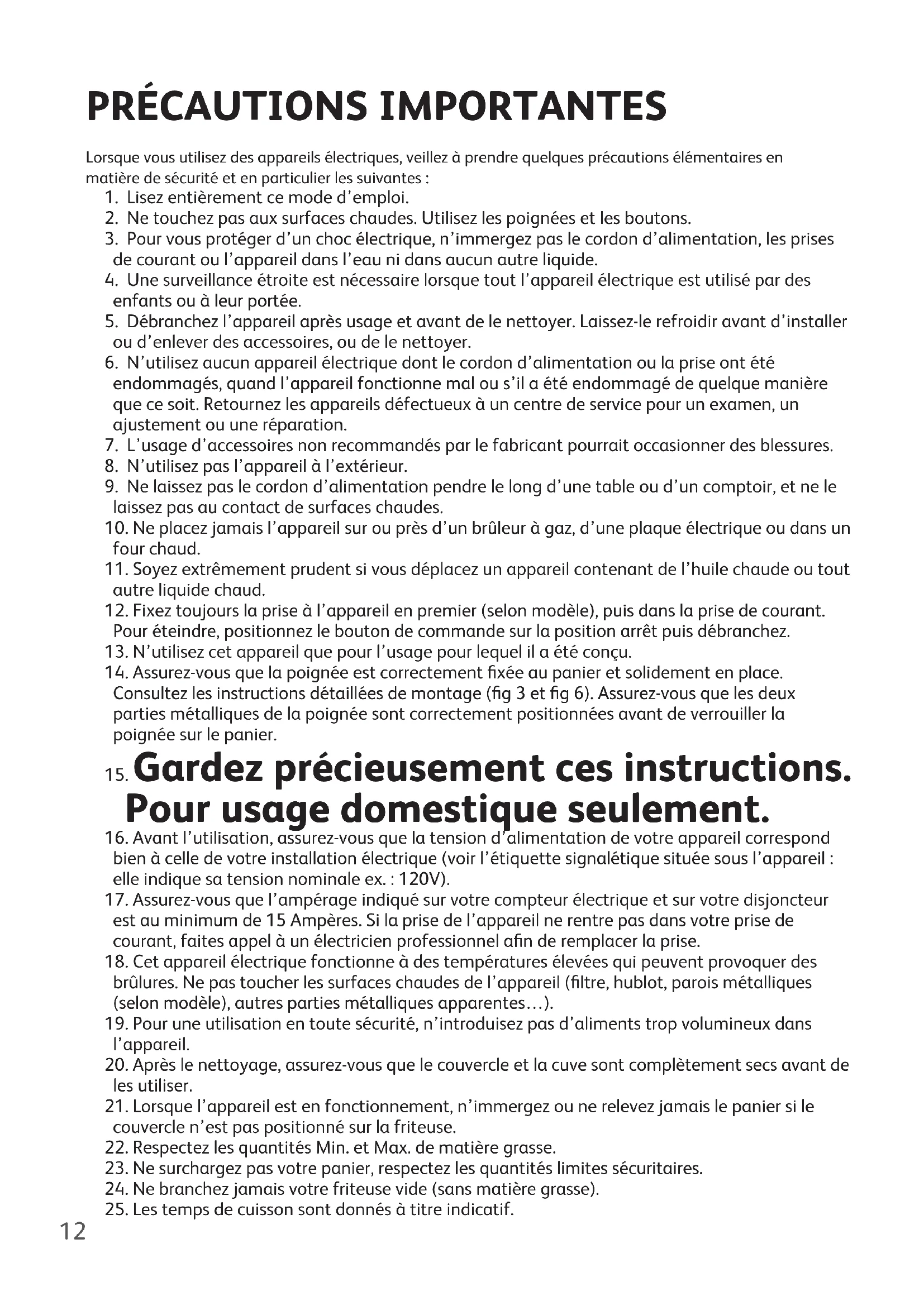 24. Ne branchez jamais votre friteuse vide (sans matière grasse).