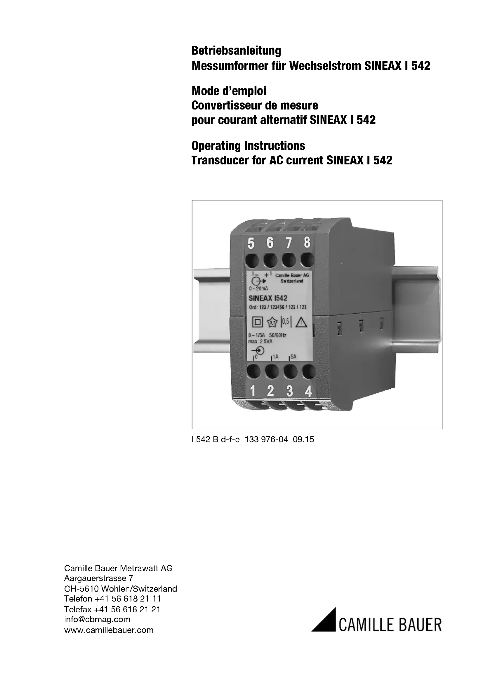 Sineax I542 - équipements de mesure Camille Bauer - Notice d'utilisation et mode d'emploi gratuit