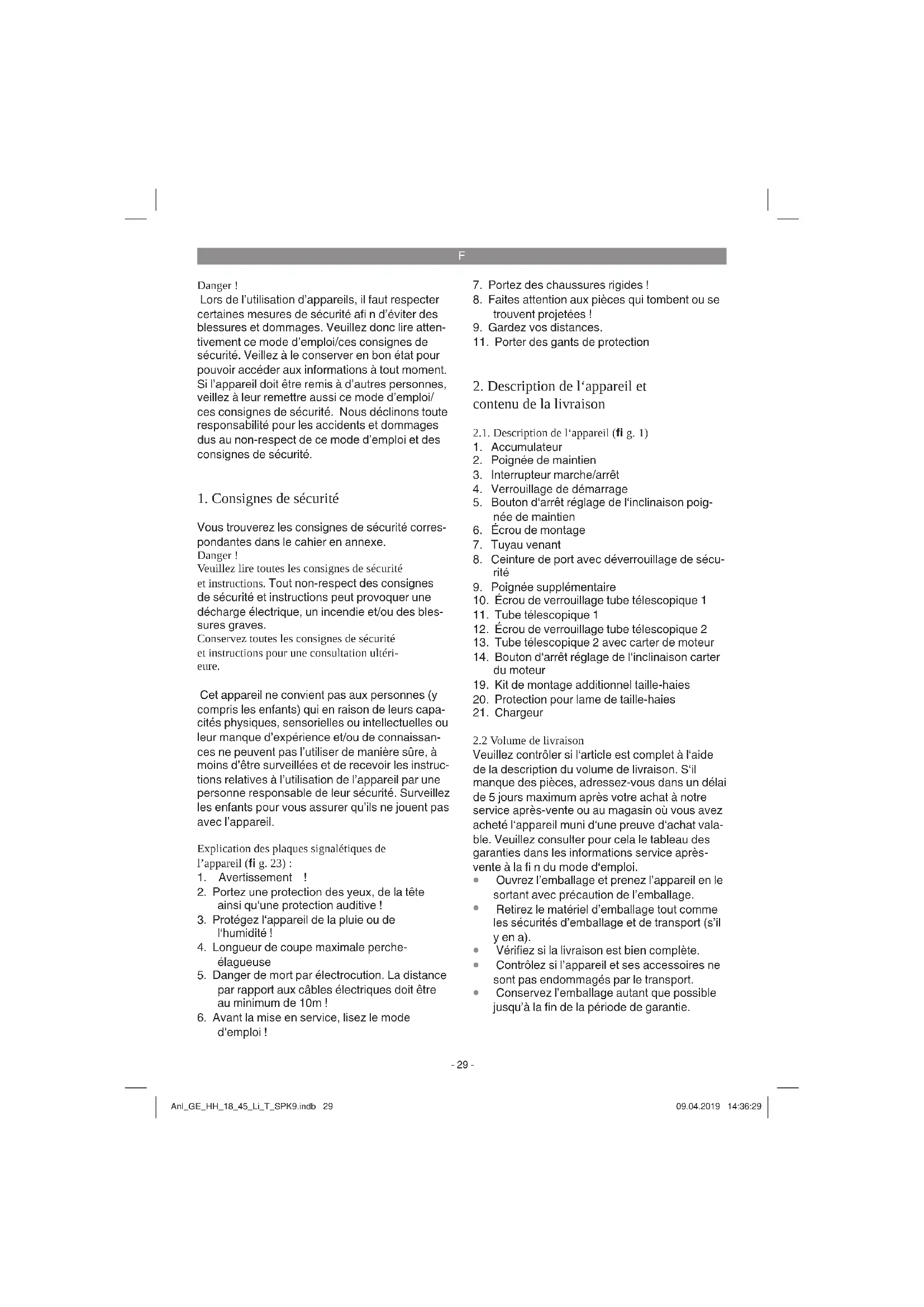 ivante : www.isc-gmbh.info. Veuillez garder à disposition la preuve d‘achat ou tout autre justifi catif de l‘achat de votre nouvel appareil. Les appareils envoyés sans les justifi catifs correspondants ou sans plaque signalétique sont exclus de la prestation de garantie en raison de l‘impossibilité de les enregistrer. Si le défaut de l‘appareil est inclut dans la garantie, vous recevrez sans délai un appareil réparé ou un nouvel appareil. Bien entendu, nous réparons volontiers les défauts de votre appareil qui ne sont pas ou plus compris dans l‘étendue de la garantie contre le remboursement des frais de réparation. Pour cela, veuillez envo- yer l‘appareil à notre adresse de service après-vente. Pour les pièces d‘usure, de consommation et manquantes, nous renvoyons aux restrictions de cette ga- rantie conformément aux informations du service après-vente de ce mode d‘emploi. Anl_GE_HH_18_45_Li_T_SPK9.indb 38Anl_GE_HH_18_45_Li_T_SPK9.indb 38 09.04.2019 14:36:3009.04.2019 14:36:30I