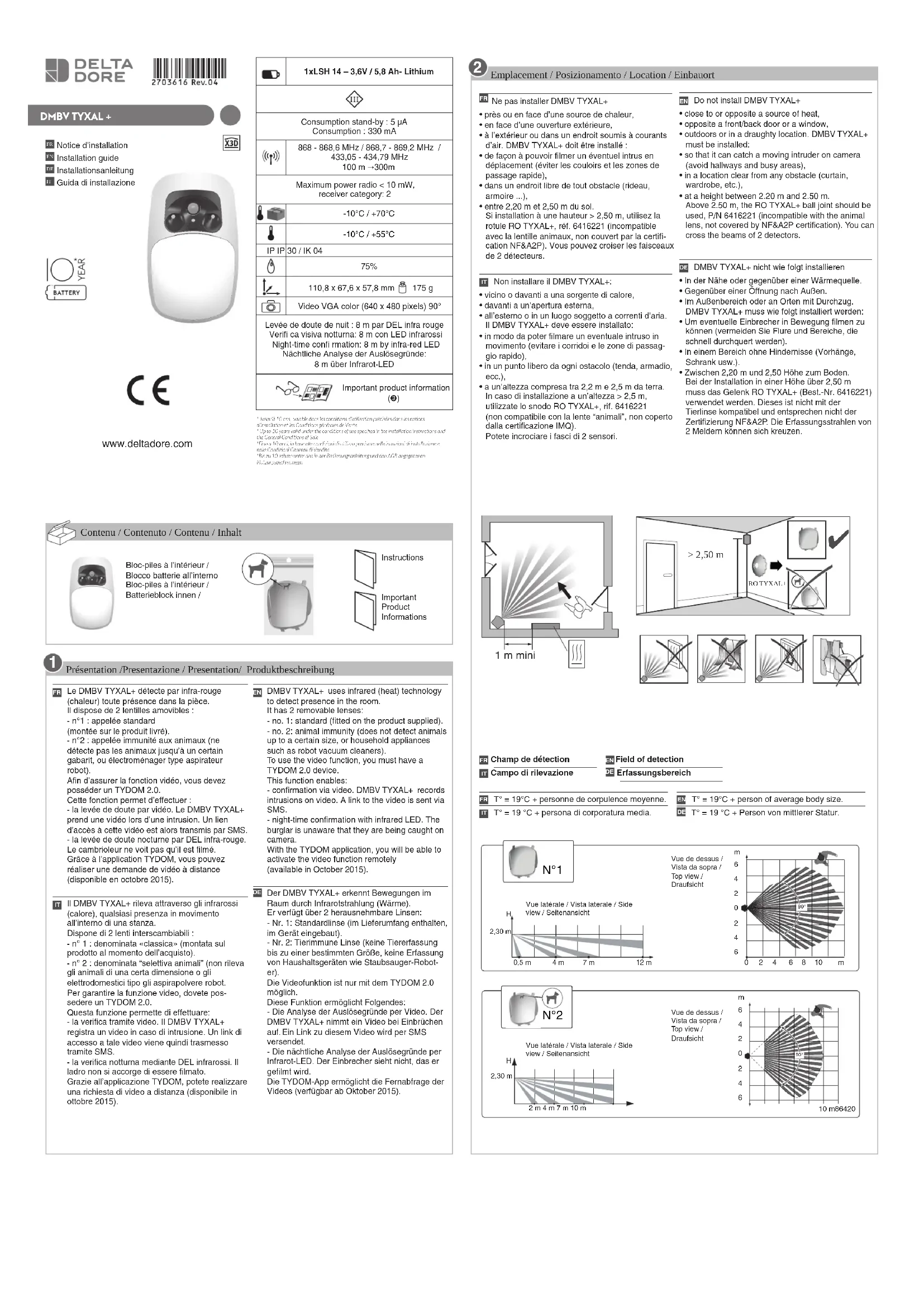 Tyxal+ DMBV - Détecteur de mouvements DELTA DORE - Notice d'utilisation et mode d'emploi gratuit