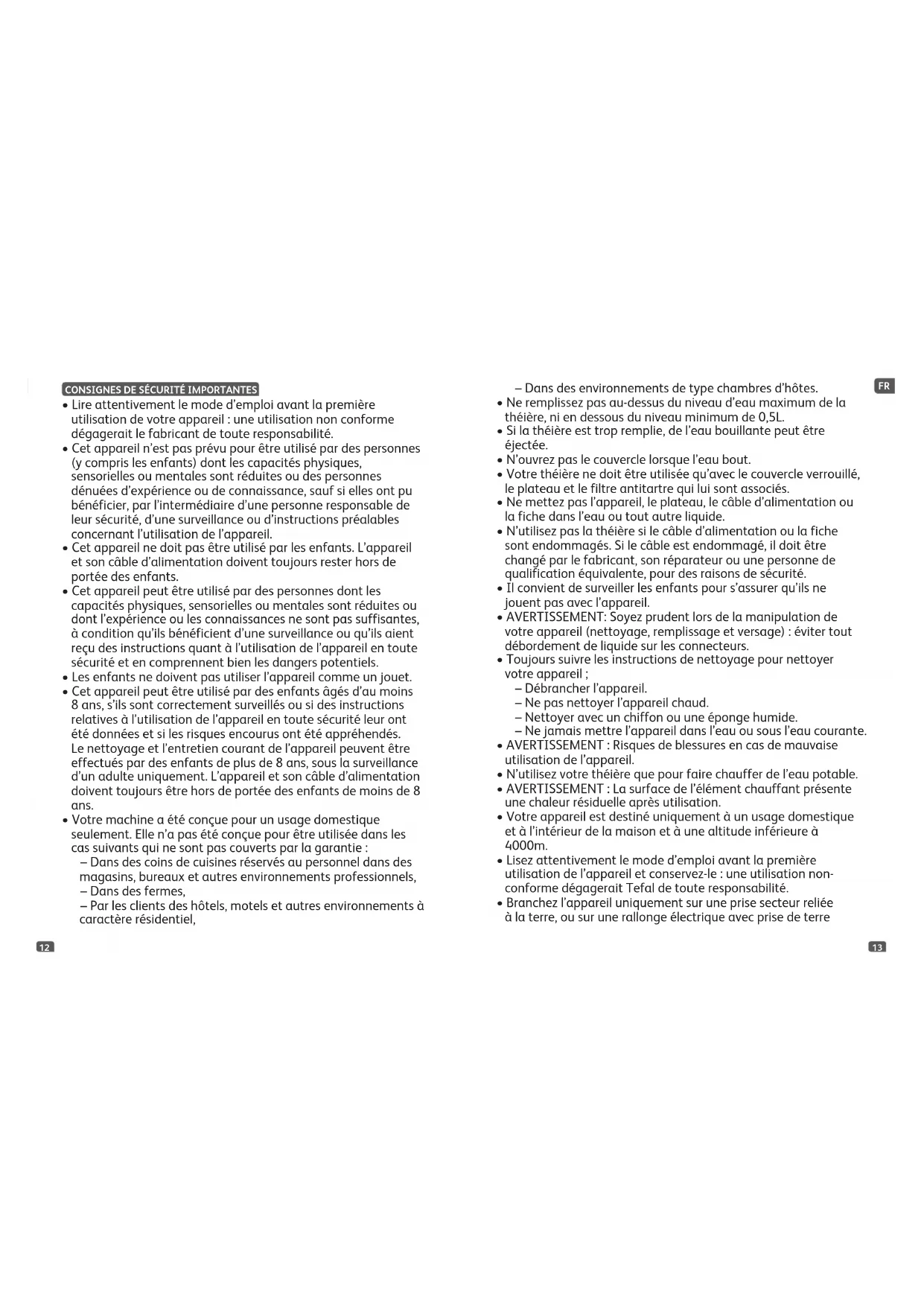 - Lisez attentivement le mode d’emploi avant la première utilisation de l’appareil et conservez-le : une utilisation non- conforme dégagerait Tefal de toute responsabilité.