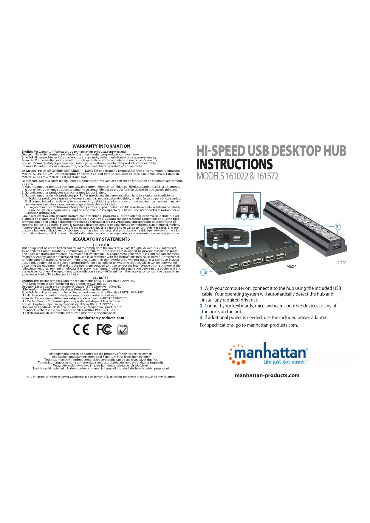 Retrouvez gratuitement la notice de l'appareil 161022 MANHATTAN au format PDF.